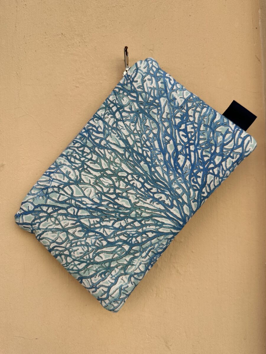 La Pochette in tessuto Corallo Caribe è un accessorio che profuma di estate e mare. Realizzata in puro cotone stampato, racchiude i colori vivaci e le forme naturali dei fondali caraibici: coralli, conchiglie e sfumature acquamarina che illuminano ogni look con leggerezza e stile. 🐚