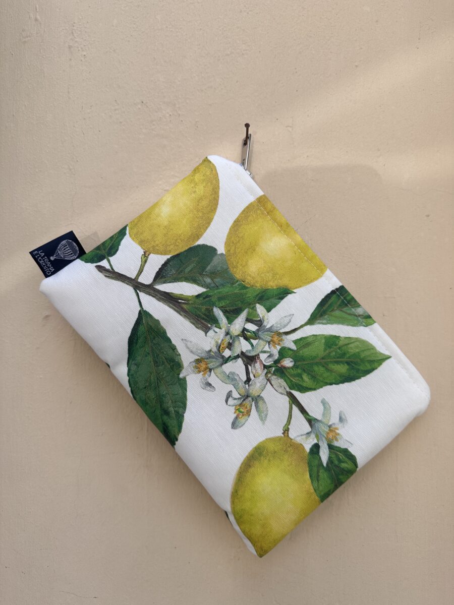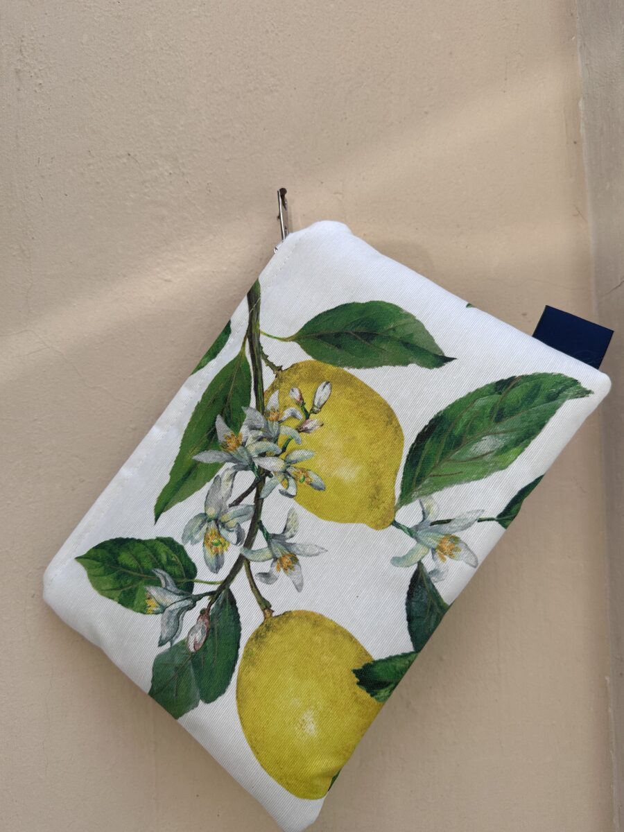La Pochette Limoni Impermeabile è l’accessorio ideale per chi ama portare con sé un tocco d’estate tutto l’anno. Realizzata in tessuto resinato antimacchia, è impermeabile, lavabile e leggera, perfetta per la spiaggia, i viaggi o la quotidianità. Il motivo con limoni dorati e foglie verde brillante evoca il profumo della costiera italiana e la luce del sole mediterraneo.🍋