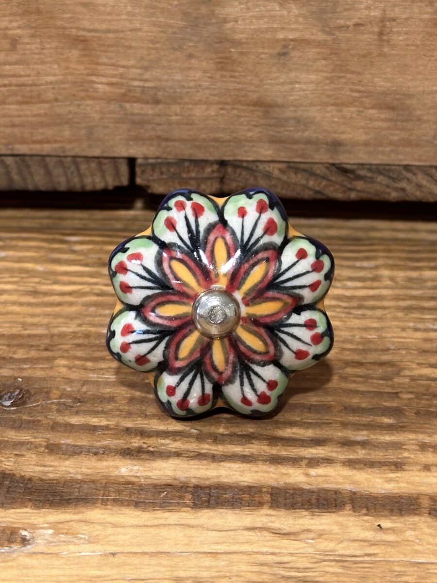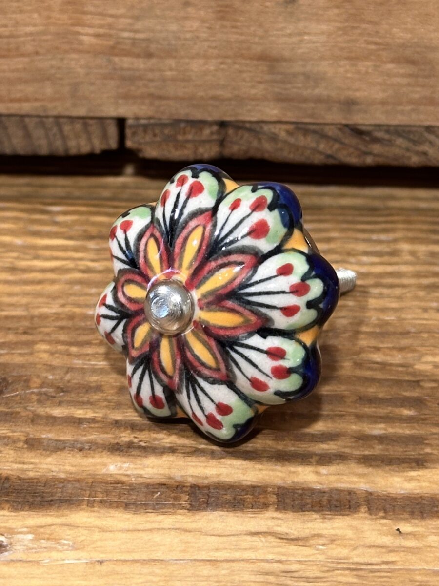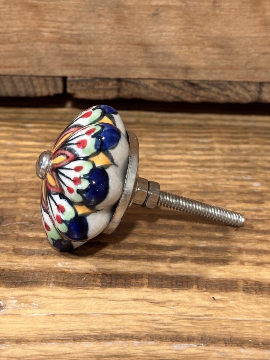 Pomolo in ceramica decorata a mano, ideale per rinnovare mobili, cassetti e ante con un tocco originale e artigianale.