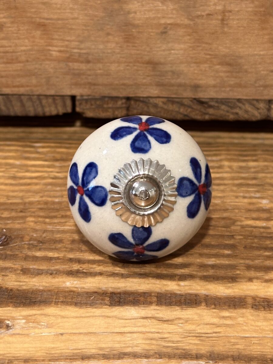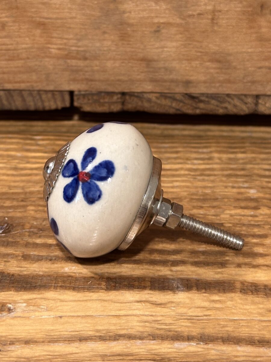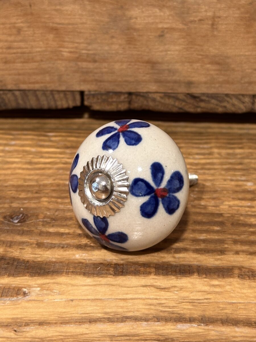 Pomolo in ceramica decorata – Fiore Shabby Blu