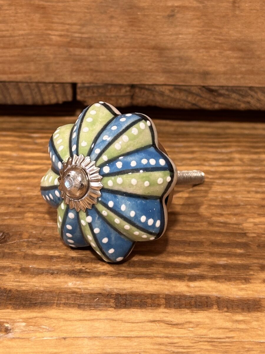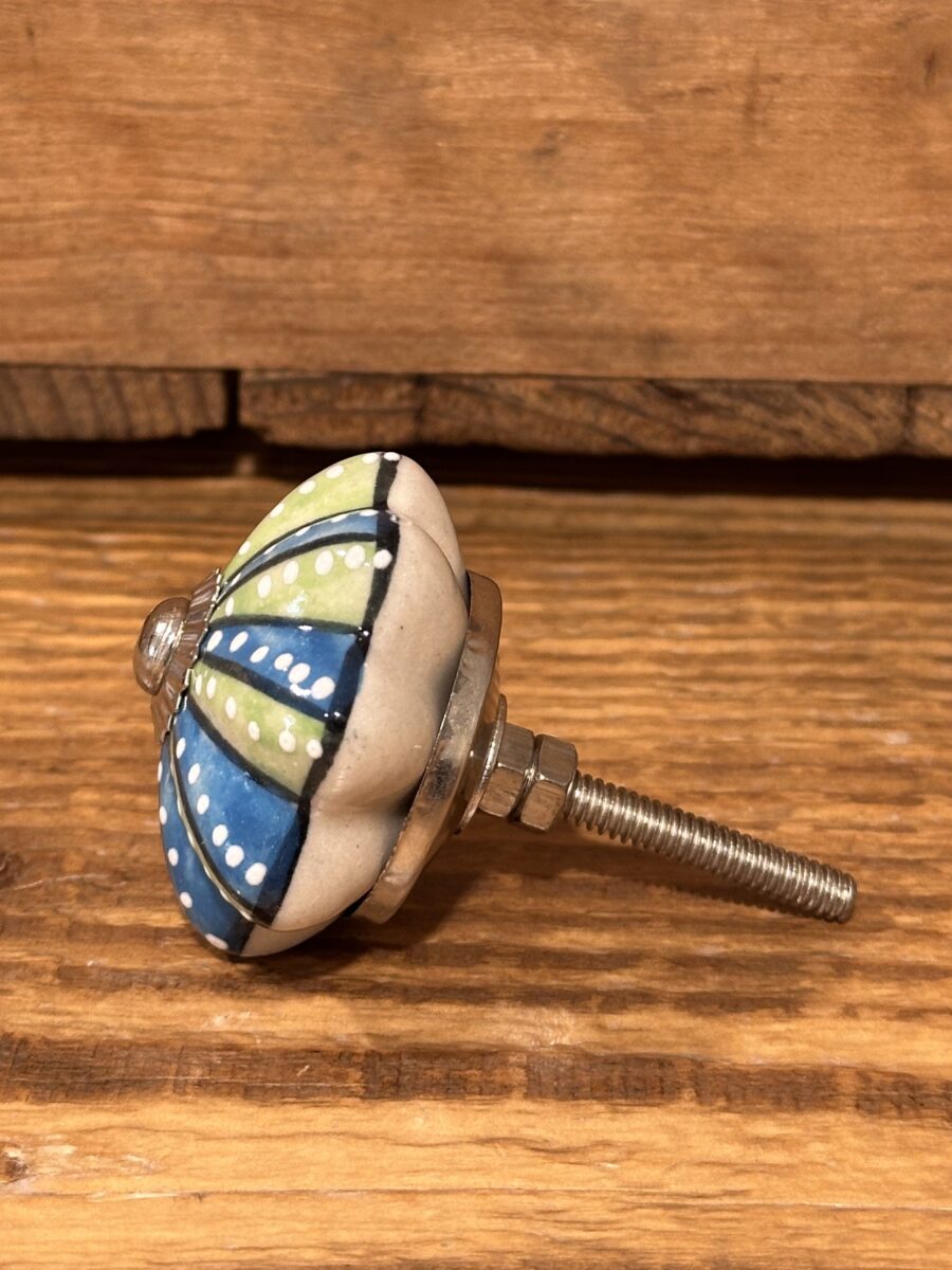 Pomolo in ceramica decorata a mano, ideale per rinnovare mobili, cassetti e ante con un tocco originale e artigianale.