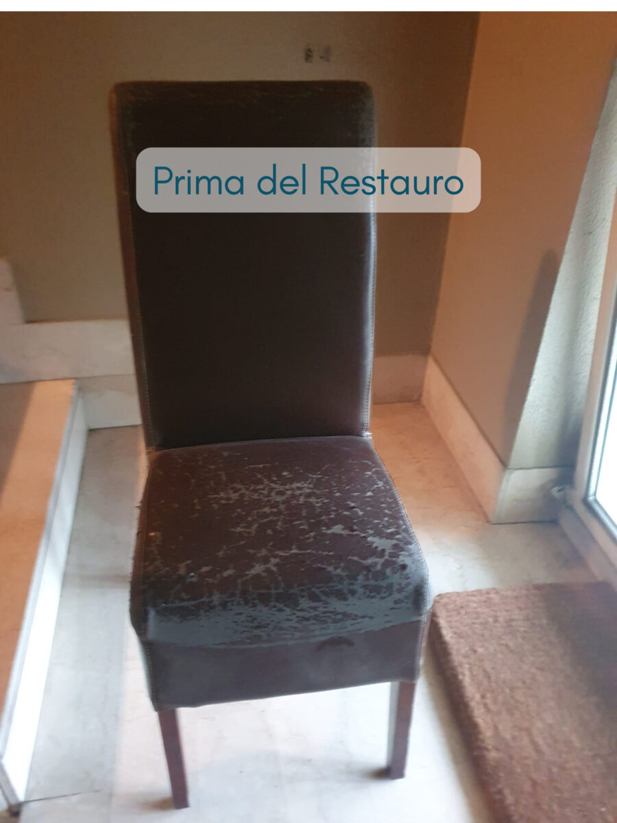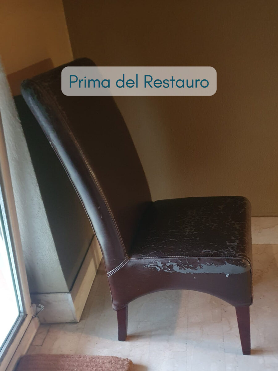 Il rivestimento sedia imbottita può cambiare radicalmente il destino di un arredo anonimo. Questa sedia, rivestita in ecopelle marrone, risultava spenta e visivamente pesante. L’ecopelle era rovinata e l’insieme non valorizzava né la struttura né l’ambiente.