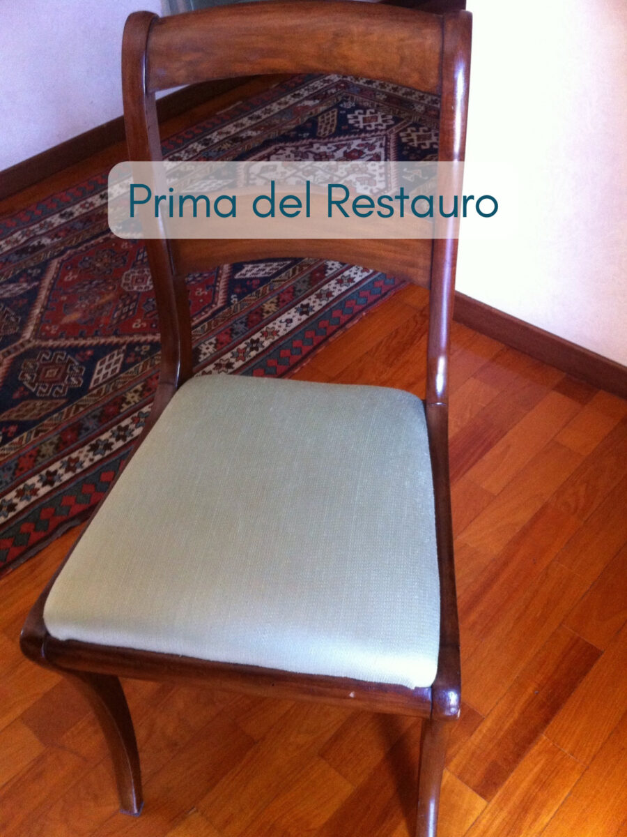 Il rivestimento sedia da pranzo può diventare semplice e pratico quando la seduta è estraibile. In questo caso abbiamo lavorato su un sedilino removibile, che il cliente può portare direttamente in negozio senza dover spostare l’intera sedia da casa.