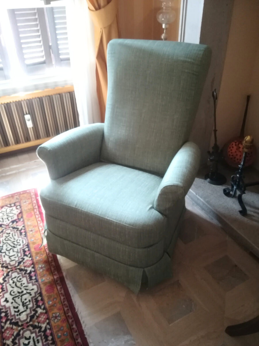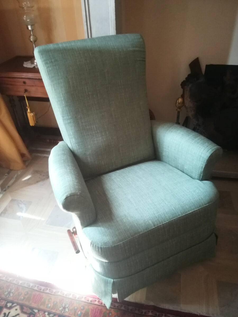 Il laboratorio di tappezzeria artigianale ha eseguito la rifoderatura seguendo con precisione le linee della poltrona e rispettando i punti di snodo del meccanismo reclinabile. Le cuciture sono state studiate per non interferire con il movimento, mentre l’imbottitura è stata verificata per assicurare comfort e stabilità.