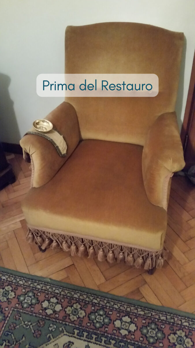 La seduta presentava un rivestimento ormai usurato, ma la base era solida e ben proporzionata. Dopo una fase di consulenza abbiamo definito insieme alla cliente lo stile desiderato e le tonalità più adatte all’ambiente. Il risultato è una poltrona elegante e armoniosa, perfettamente integrata nella camera da letto.