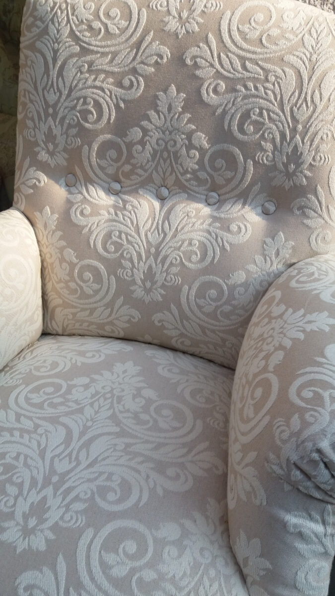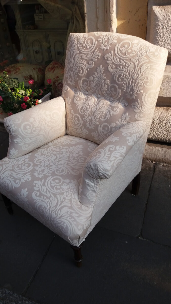 Questo rivestimento su misura per una poltrona da camera non è in vendita, ma rappresenta un esempio concreto di ciò che possiamo realizzare su misura.