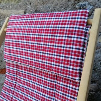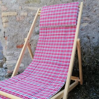 Le sedie a sdraio pieghevoli sono l’ideale per concedersi un momento di relax in mezzo al verde, nel proprio giardino, sul balcone, al mare o in campeggio. Fra i vantaggi che offrono ci sono la facilità di trasporto e la leggerezza. Una volta chiuse, infatti, risultano essere molto compatte e possono essere facilmente inserite anche nel bagagliaio dell’auto. Sono delle sedie a tutti gli effetti, che offrono il vantaggio di poter essere piegate per essere trasportate ovunque. In casa, in giardino, sul terrazzo, in spiaggia o a bordo piscina la sdraio in legno, con le sue linee essenziali, riesce a valorizzare lo spazio moderno e a regalare eleganza a quello arredato in stile classico. Noi vi proponiamo questa sedia sdraio in legno di betulla, con un rivestimento rimovibile e lavabile in lavatrice, realizzato dalla nostra sartoria con uno dei tessuti della collezione “La trama e l’ordito”. C’è anche un piccolo cuscino leggermente imbottito, per appoggiare la testa, attaccato col velcro, che si può mettere e togliere a piacere. La posizione seduta/sdraiata è regolabile su quattro livelli. Poi si ripiega su sé stessa ed è molto pratica da riporre.