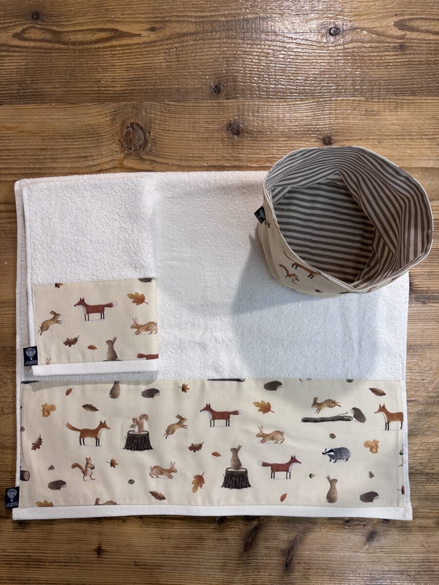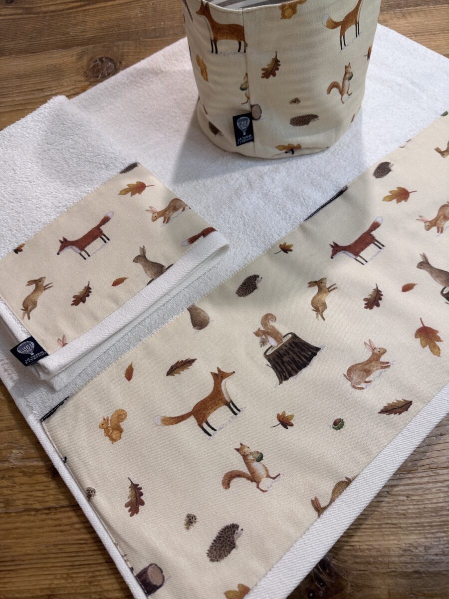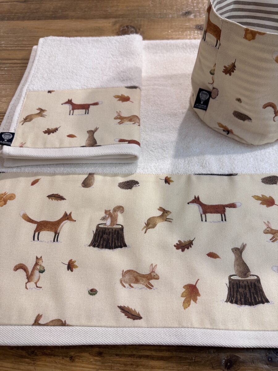 Il Set Bagno Bosco Vaniglia è lavabile e facile da mantenere nel tempo. L’etichetta con il nostro logo certifica l’autenticità e la produzione 100% italiana. La disposizione dei soggetti sul tessuto può variare leggermente, rendendo ogni set unico e irripetibile.