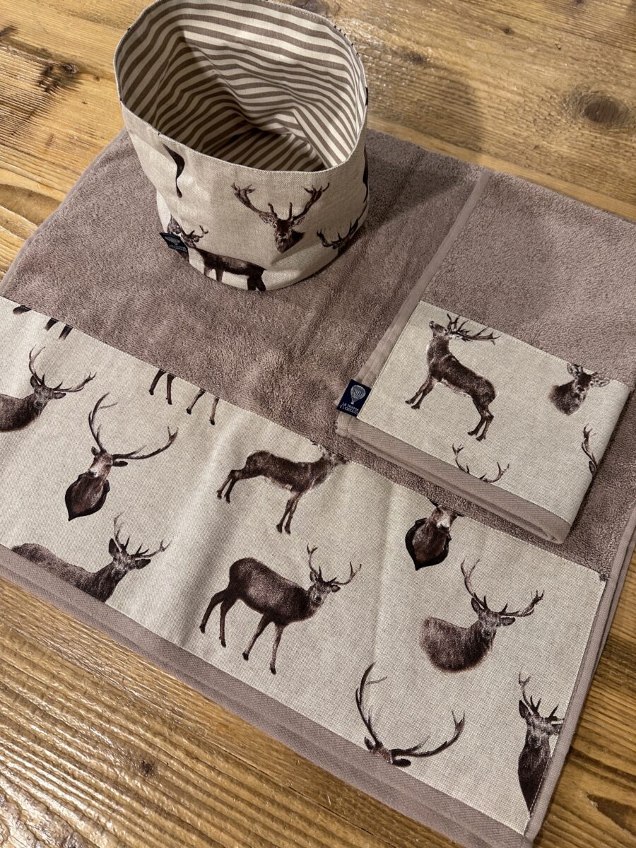 Il Set Bagno Cervi Brown è lavabile e pensato per mantenere nel tempo bellezza e morbidezza. L’etichetta con il nostro logo garantisce autenticità e produzione 100% italiana. Ogni set è unico: la disposizione dei soggetti sul tessuto può variare leggermente, rendendo ogni creazione irripetibile e originale.