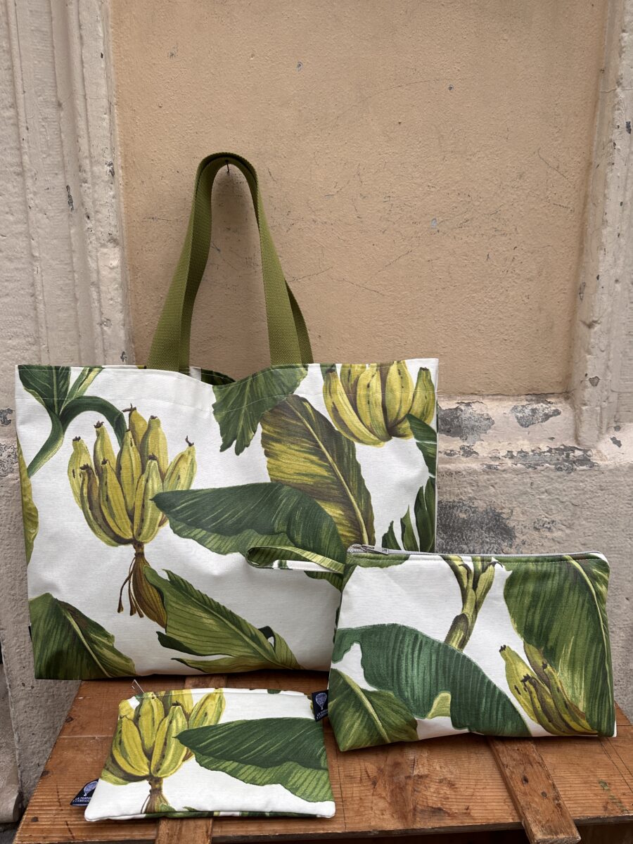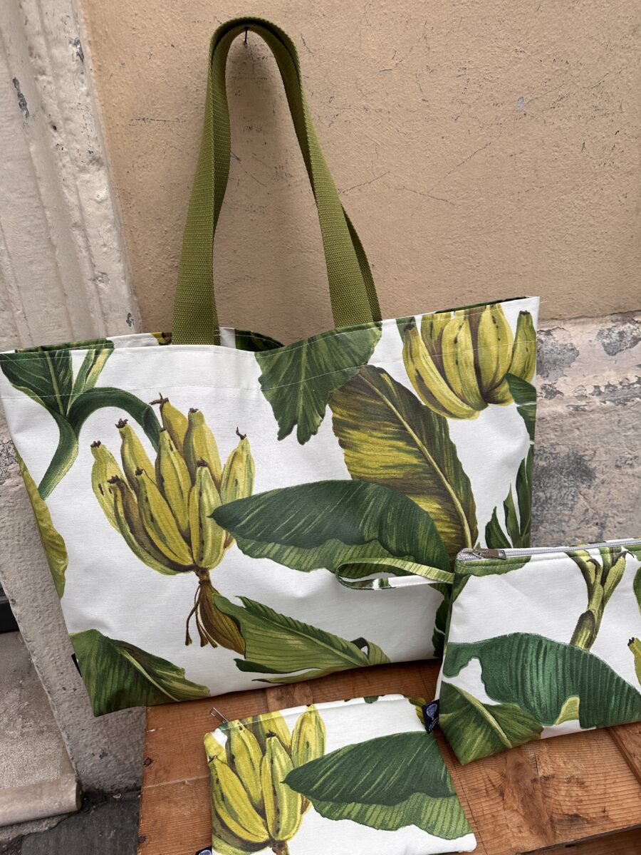 La Collezione Banane è un concentrato di energia e simpatia, perfetta per chi ama accessori allegri e fuori dal comune. Con i nostri tessuti esclusivi abbiamo realizzato un set borsa impermeabile pochette beauty case Banane, pratico e originale, in puro cotone resinato impermeabile e rifinito nella nostra sartoria di Brescia. 🍌