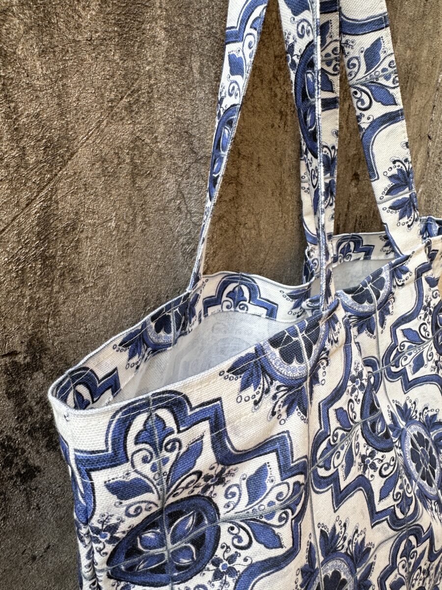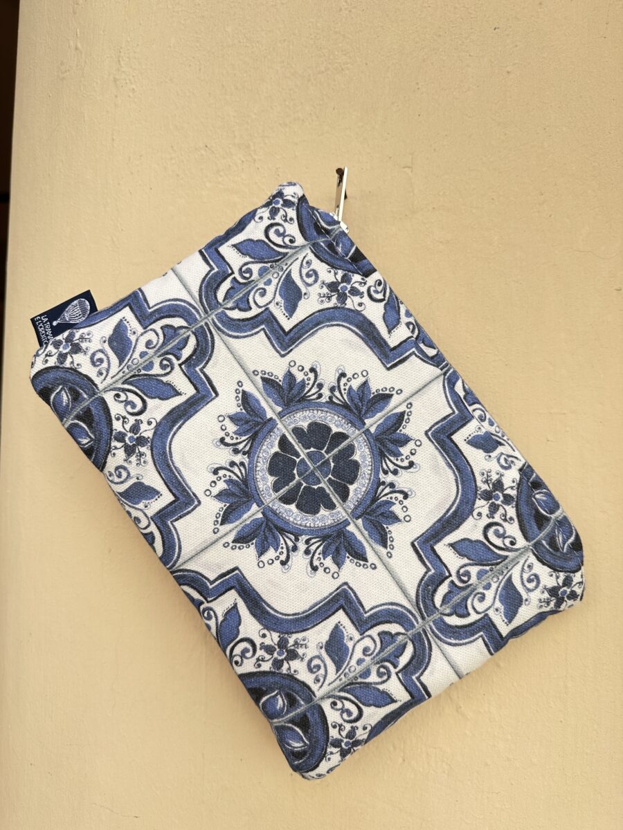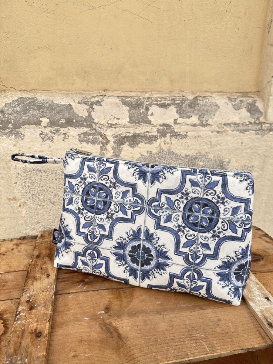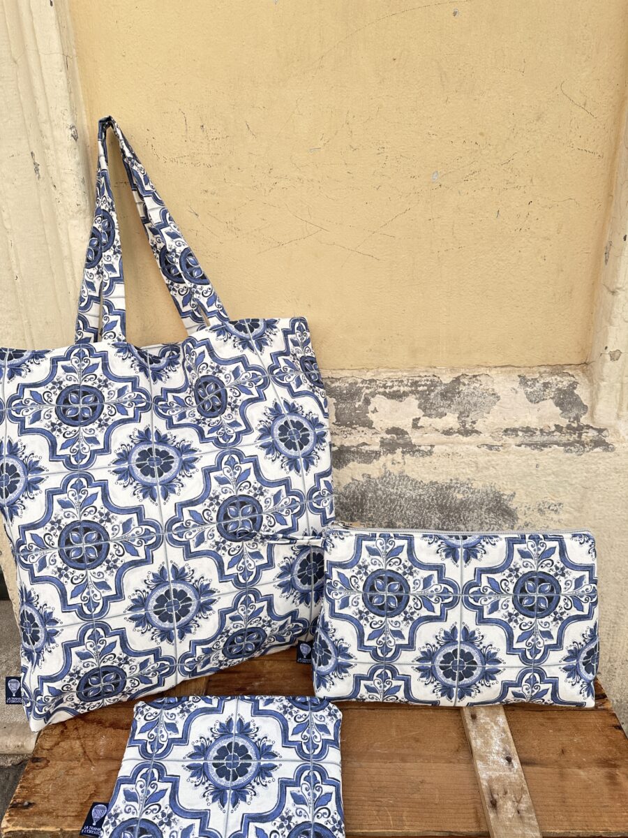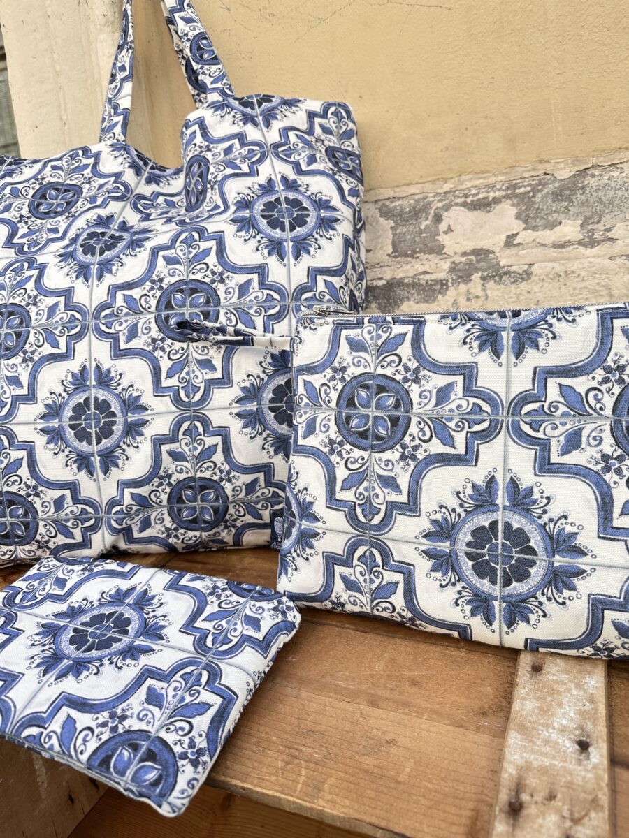La collezione Maioliche Azulejos comprende un set con tote bag, pochette e beauty case coordinati, creati con lo stesso tessuto per formare una parure elegante e versatile. Abbiamo progettato una linea di accessori in puro cotone realizzati con i nostri tessuti esclusivi, pensata per chi cerca uno stile personale e raffinato.