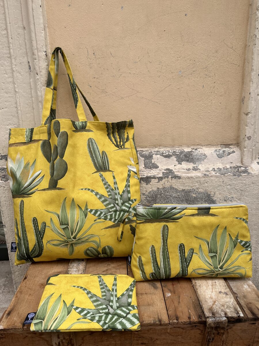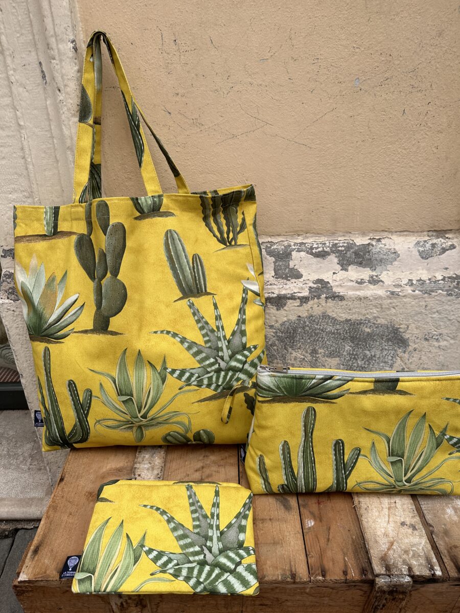 Abbiamo progettato una linea di accessori in puro cotone realizzati con i nostri tessuti esclusivi, pensata per chi cerca uno stile personale e raffinato. La collezione Cactus Mexico comprende un set con tote bag, pochette e beauty case coordinati, creati con lo stesso tessuto per formare una parure elegante e versatile. 🌵