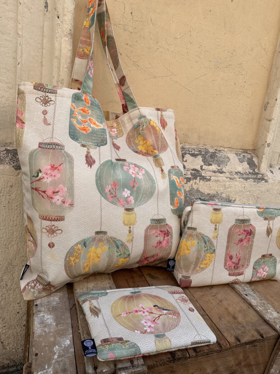 Puoi acquistare il set completo Tote Bag Pochette Beauty Case Lanterne oppure scegliere i singoli accessori ,cliccando sui link evidenziati