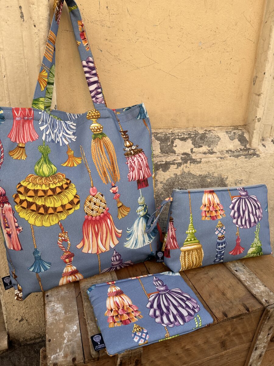 Puoi acquistare l’intero set o scegliere i singoli pezzi cliccando sui link dedicati: Tote Bag – Pochette – Beauty Case.