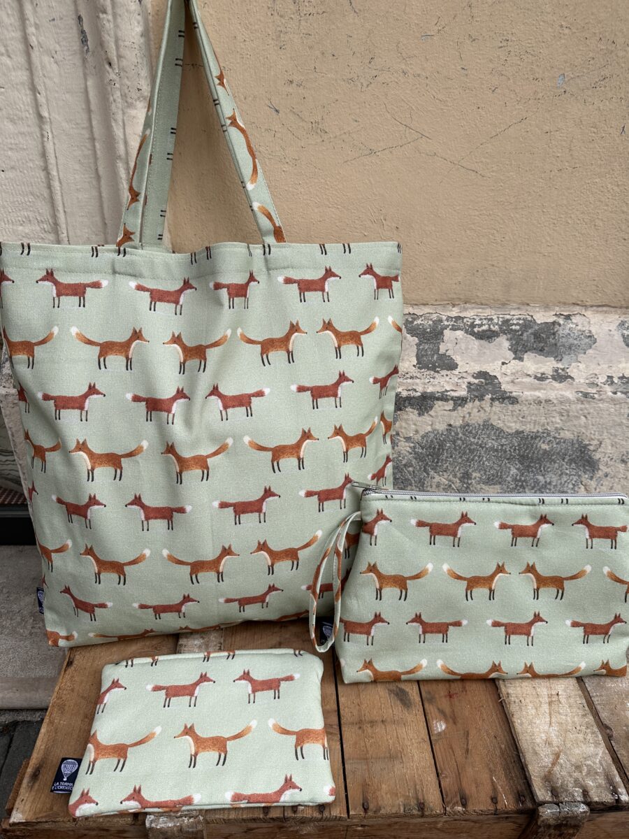 La Collezione Volpi è dedicata a chi ama gli animali e desidera accessori allegri ma raffinati. Il nostro set tote bag pochette beauty case Volpi è realizzato in puro cotone con i tessuti esclusivi della nostra sartoria, pensato per aggiungere un tocco unico alla vita di tutti i giorni. 🦊