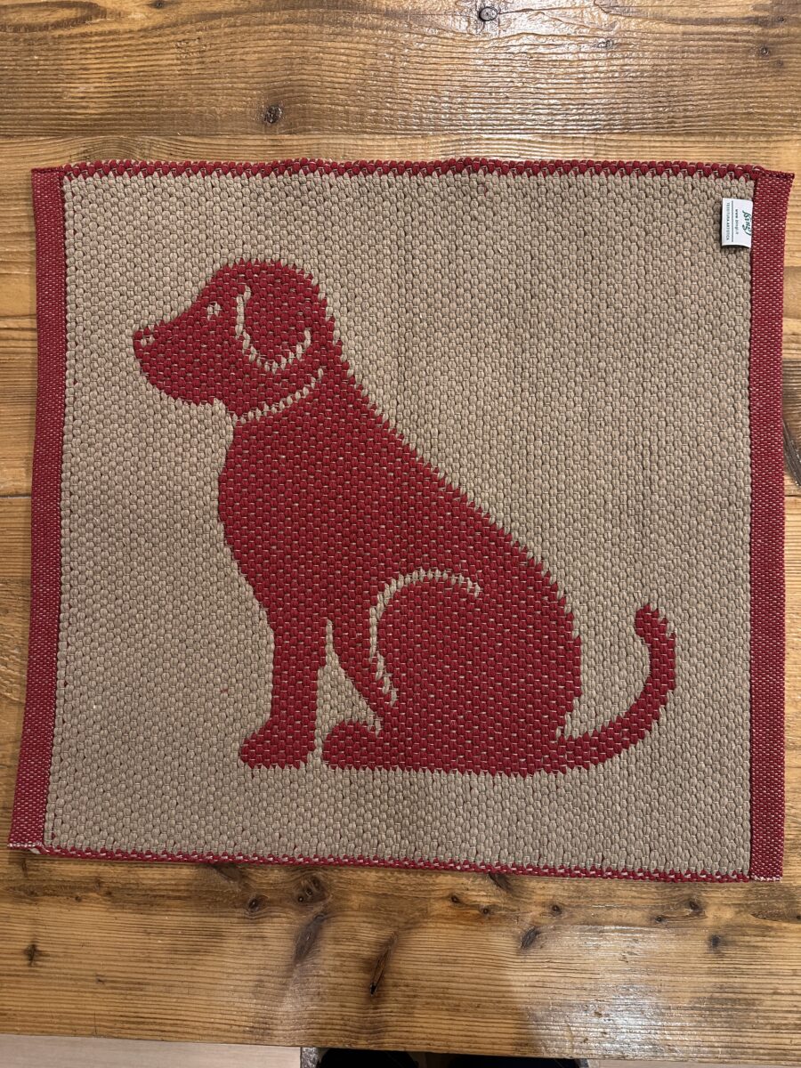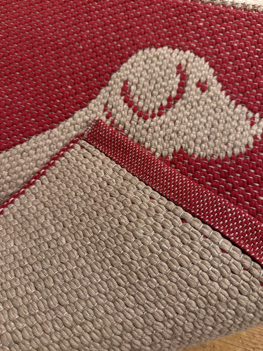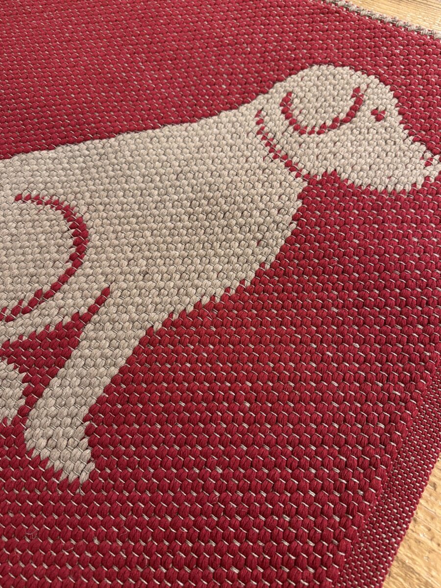 Il Tappeto Artigianale Cane Rosso è realizzato a telaio manuale con un elegante motivo ispirato ai nostri amici domestici. La lavorazione double face positivo/negativo in cotone e lino crea un intreccio resistente, decorativo e lavabile, ideale per dare carattere a cucine, ingressi e corridoi.
