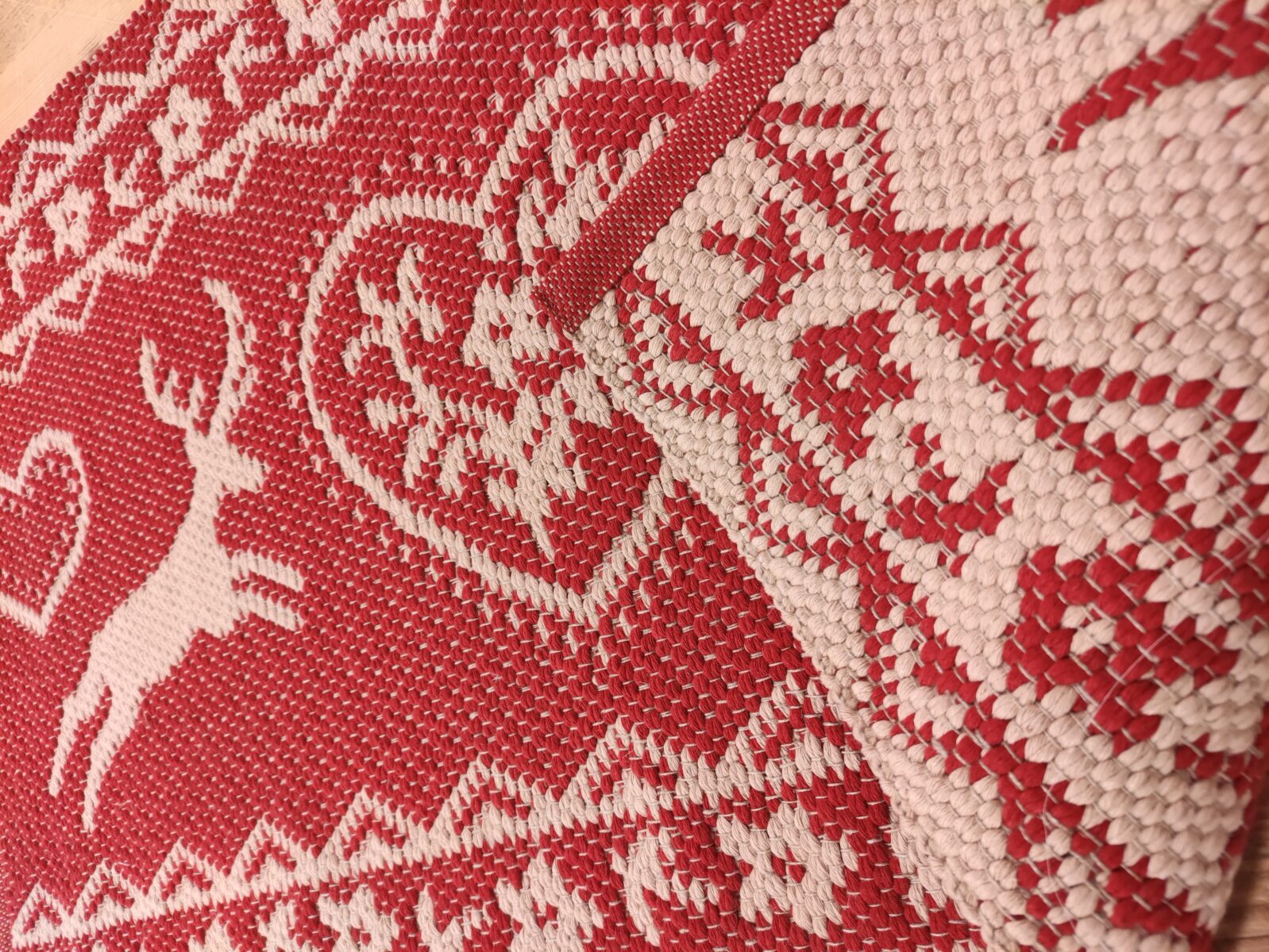 La larghezza del Tappeto Cervi e Cuori è determinata dal telaio ed è pari a 60 cm, una misura pensata per adattarsi con facilità a diversi spazi della casa. La lunghezza, invece, può variare su richiesta, arrivando fino a 3 metri. Questo permette di utilizzare il tappeto in corridoi, ingressi, cucine o ai piedi di un letto, adattandolo alle esigenze specifiche di ogni ambiente.