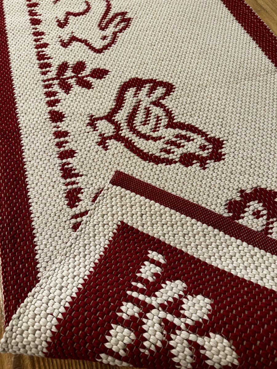 La larghezza del Tappeto Galline e Coniglio è determinata dal telaio ed è pari a 60 cm, una misura pensata per adattarsi con facilità a diversi spazi della casa. La lunghezza, invece, può variare su richiesta, arrivando fino a 3 metri. Questo permette di utilizzare il tappeto in corridoi, ingressi, cucine o ai piedi di un letto, adattandolo alle esigenze specifiche di ogni ambiente.