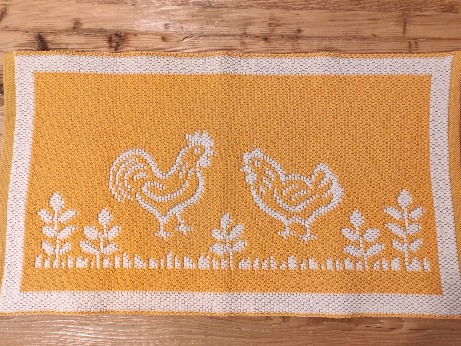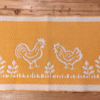 La larghezza del Tappeto Galline Giallo è determinata dal telaio ed è pari a 60 cm, una misura pensata per adattarsi con facilità a diversi spazi della casa. La lunghezza, invece, può variare su richiesta, arrivando fino a 3 metri. Questo permette di utilizzare il tappeto in corridoi, ingressi, cucine o ai piedi di un letto, adattandolo alle esigenze specifiche di ogni ambiente.