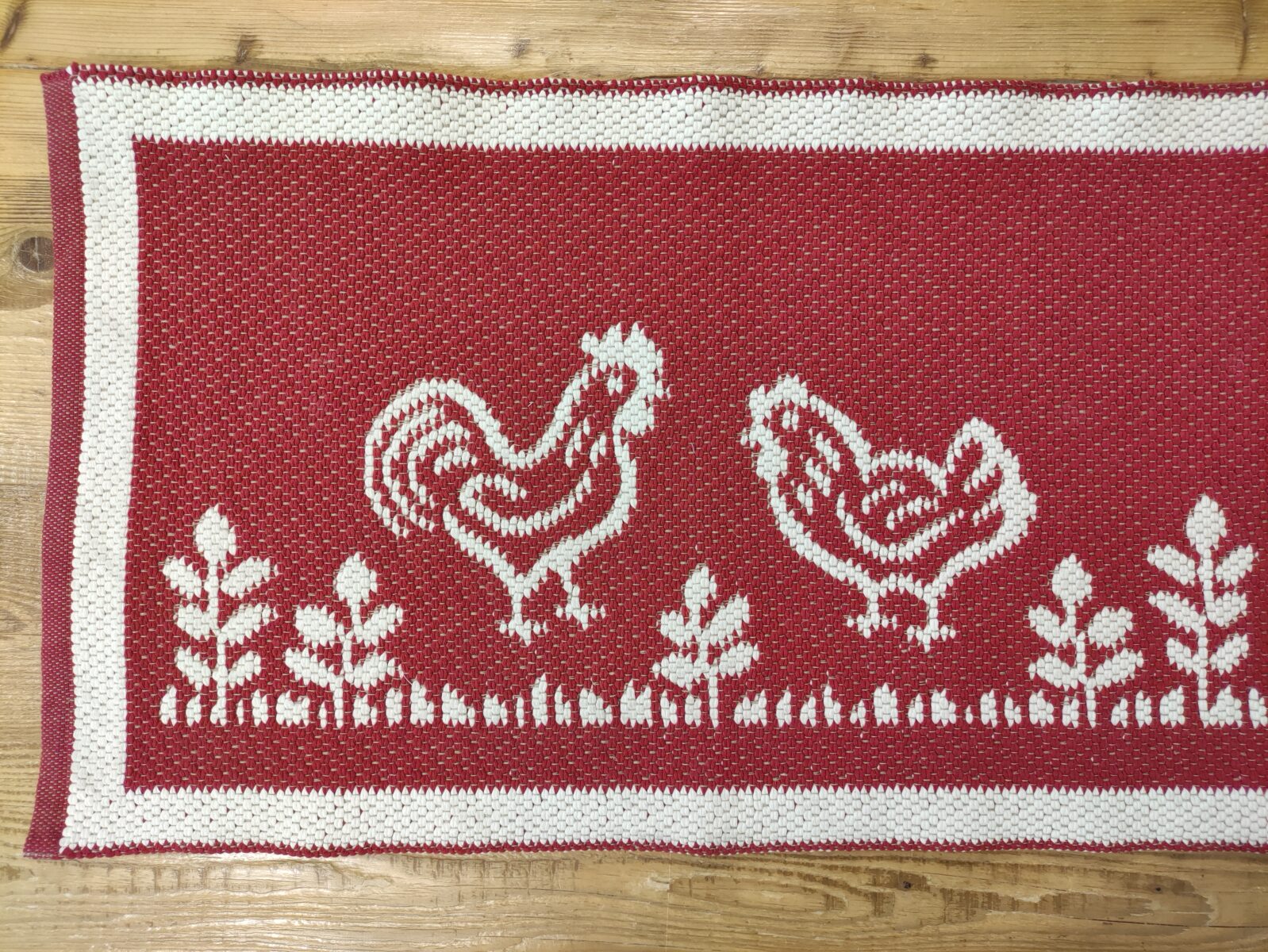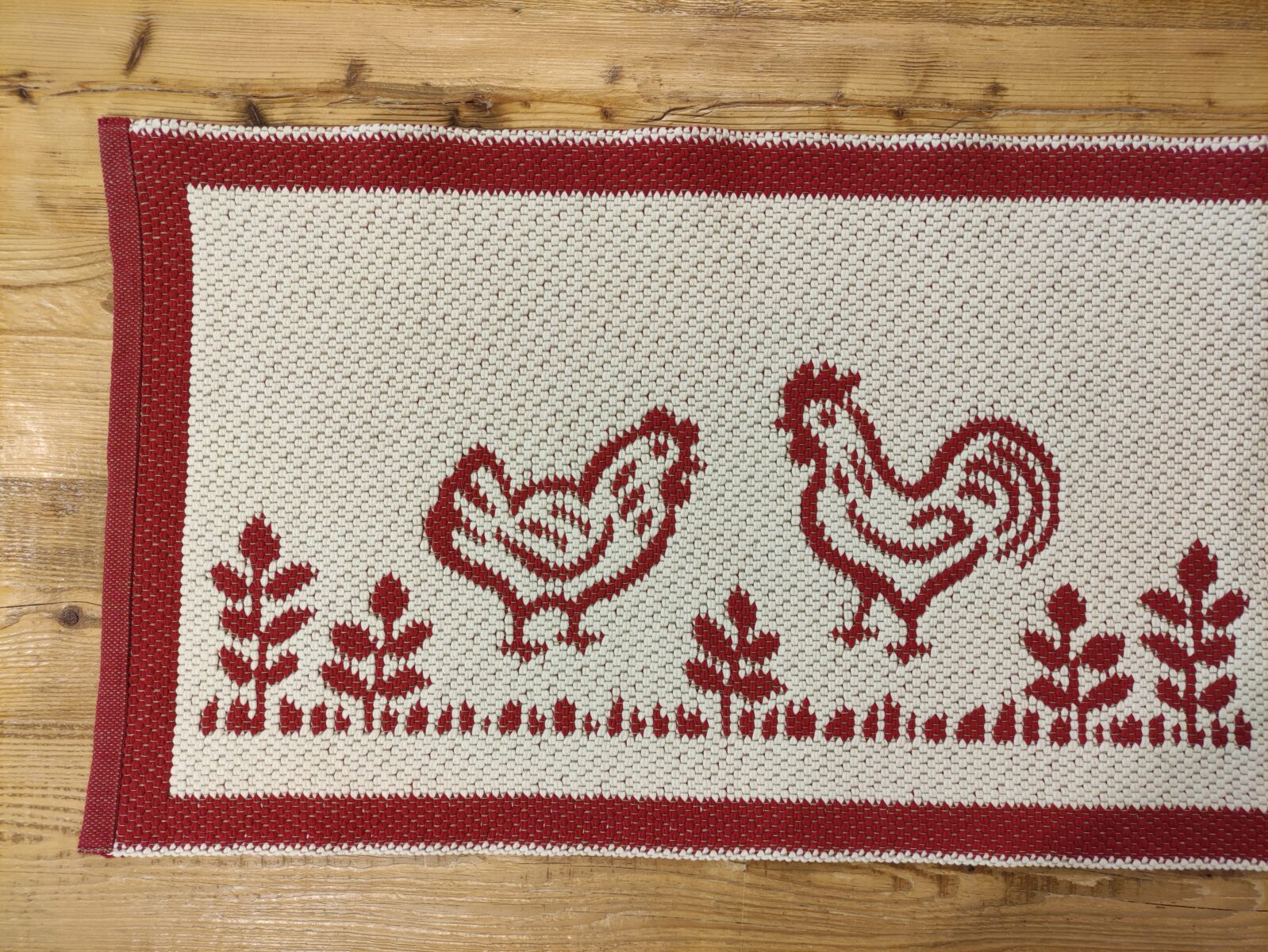 La larghezza del Tappeto Galline Rosso è determinata dal telaio ed è pari a 60 cm, una misura pensata per adattarsi con facilità a diversi spazi della casa. La lunghezza, invece, può variare su richiesta, arrivando fino a 3 metri. Questo permette di utilizzare il tappeto in corridoi, ingressi, cucine o ai piedi di un letto, adattandolo alle esigenze specifiche di ogni ambiente.