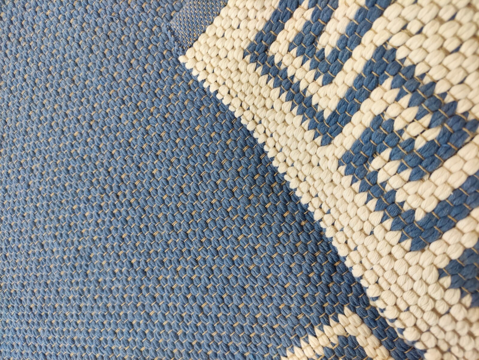 La lavorazione double face positivo/negativo consente di ottenere due effetti decorativi differenti. Da un lato il colore dominante si presenta come fondo mentre il motivo della greca emerge in contrasto. Dall’altro la situazione si inverte, offrendo una soluzione pratica e versatile. La struttura compatta deriva dall’intreccio tra la trama in cotone anallergico, solida ma morbida, e l’ordito in lino naturale, scelto per garantire durabilità, stabilità e una mano piacevolmente materica.