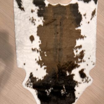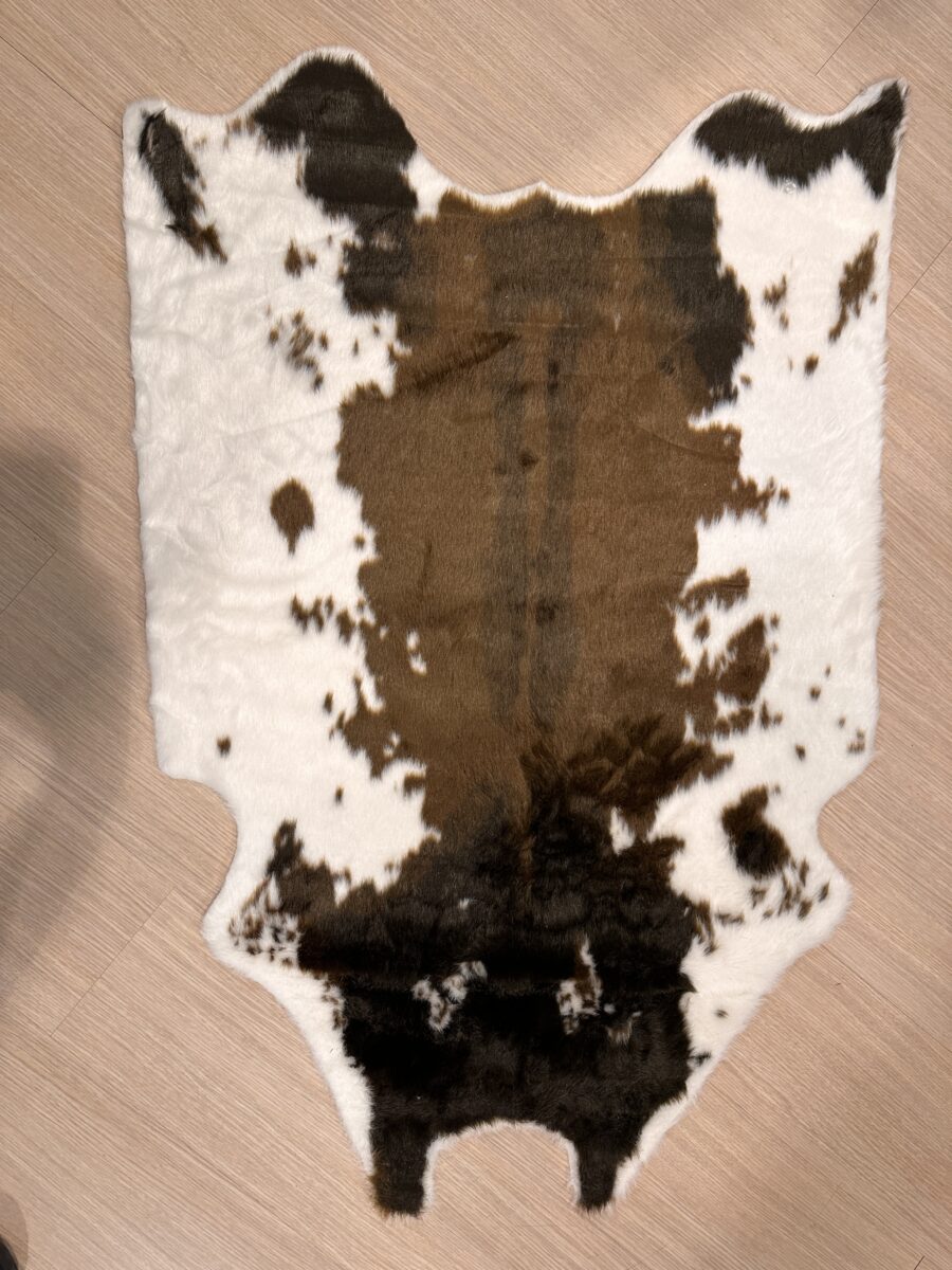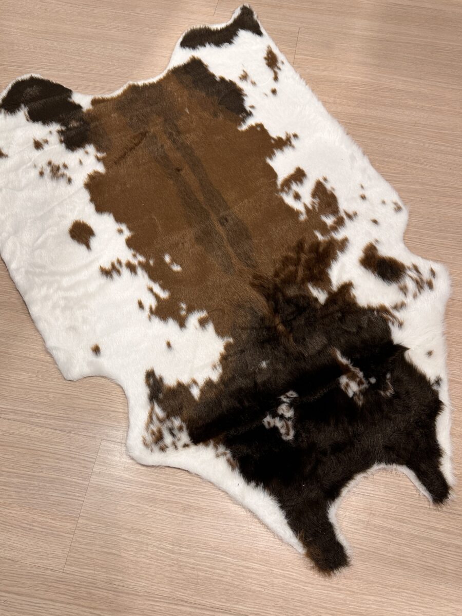 Tappeto Mucca in Ecopelliccia. Realizzato con morbido pelo sintetico, questo tappeto cattura l’essenza delle pelli di mucca naturali, ma con un approccio più consapevole e sostenibile. La texture animalier del pelo sintetico, che richiama le caratteristiche uniche delle pelli di mucca, offre un richiamo visivo e tattile in grado di arricchire l’ambiente con tonalità naturali e forme singolari, senza sacrificare la moralità.