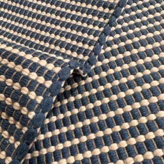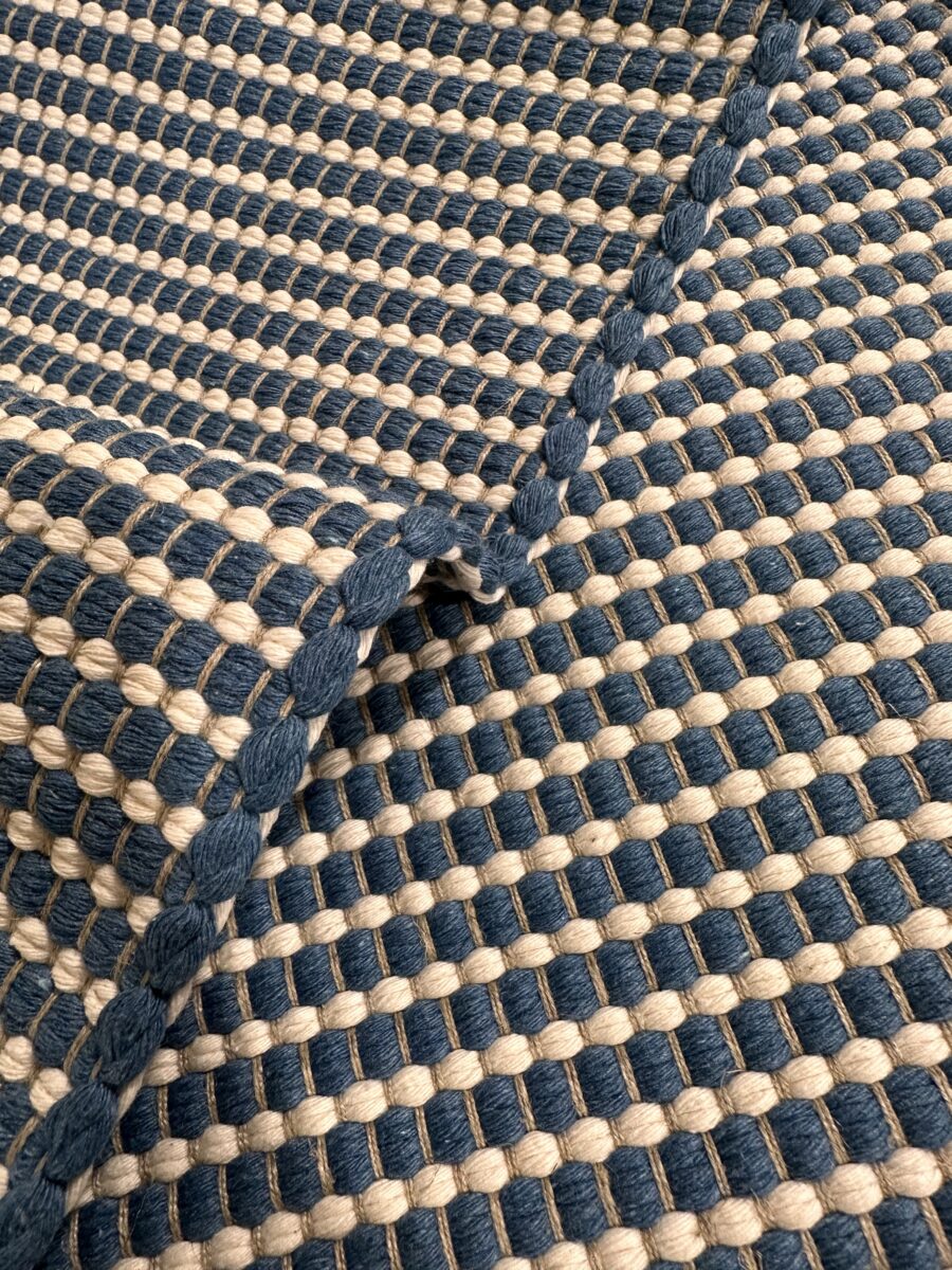 La scelta dei materiali è centrale. I tappeti sono composti esclusivamente da fibre naturali, selezionate per garantire qualità, durata e benessere negli ambienti domestici. Il cotone viene utilizzato per la trama, mentre il lino costituisce l’ordito. Questa combinazione dona al tappeto una struttura equilibrata, resistente ma allo stesso tempo piacevole al tatto. Inoltre, trattandosi di materiali naturali, il prodotto risulta anallergico ed ecologico, ideale anche per chi presta particolare attenzione alla salubrità della casa.