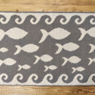 Oltre al modello mostrato, il tappeto pesci può essere ordinato in altri colori e in varie lunghezze. Le combinazioni disponibili sono indicate nel catalogo. Ogni tappeto è realizzato su ordinazione. Serve il tempo necessario affinché l’artigiano completi il lavoro con precisione e cura. L’attesa fa parte del valore del prodotto: un oggetto creato per voi, unico e autentico, frutto di una lavorazione manuale e non di una produzione di massa.