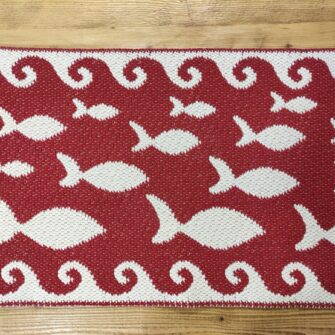 Oltre al modello mostrato, il tappeto pesci può essere ordinato in altri colori e in varie lunghezze. Le combinazioni disponibili sono indicate nel catalogo. Ogni tappeto è realizzato su ordinazione. Serve il tempo necessario affinché l’artigiano completi il lavoro con precisione e cura. L’attesa fa parte del valore del prodotto: un oggetto creato per voi, unico e autentico, frutto di una lavorazione manuale e non di una produzione di massa.