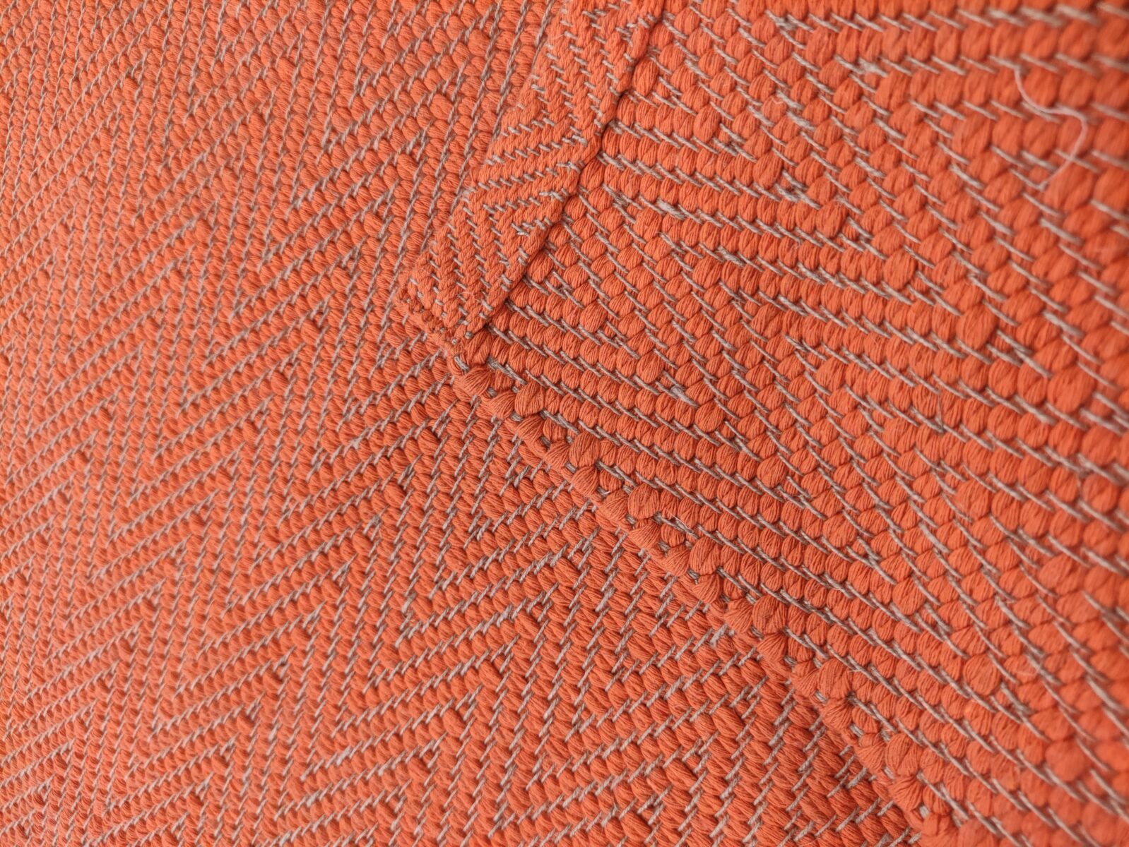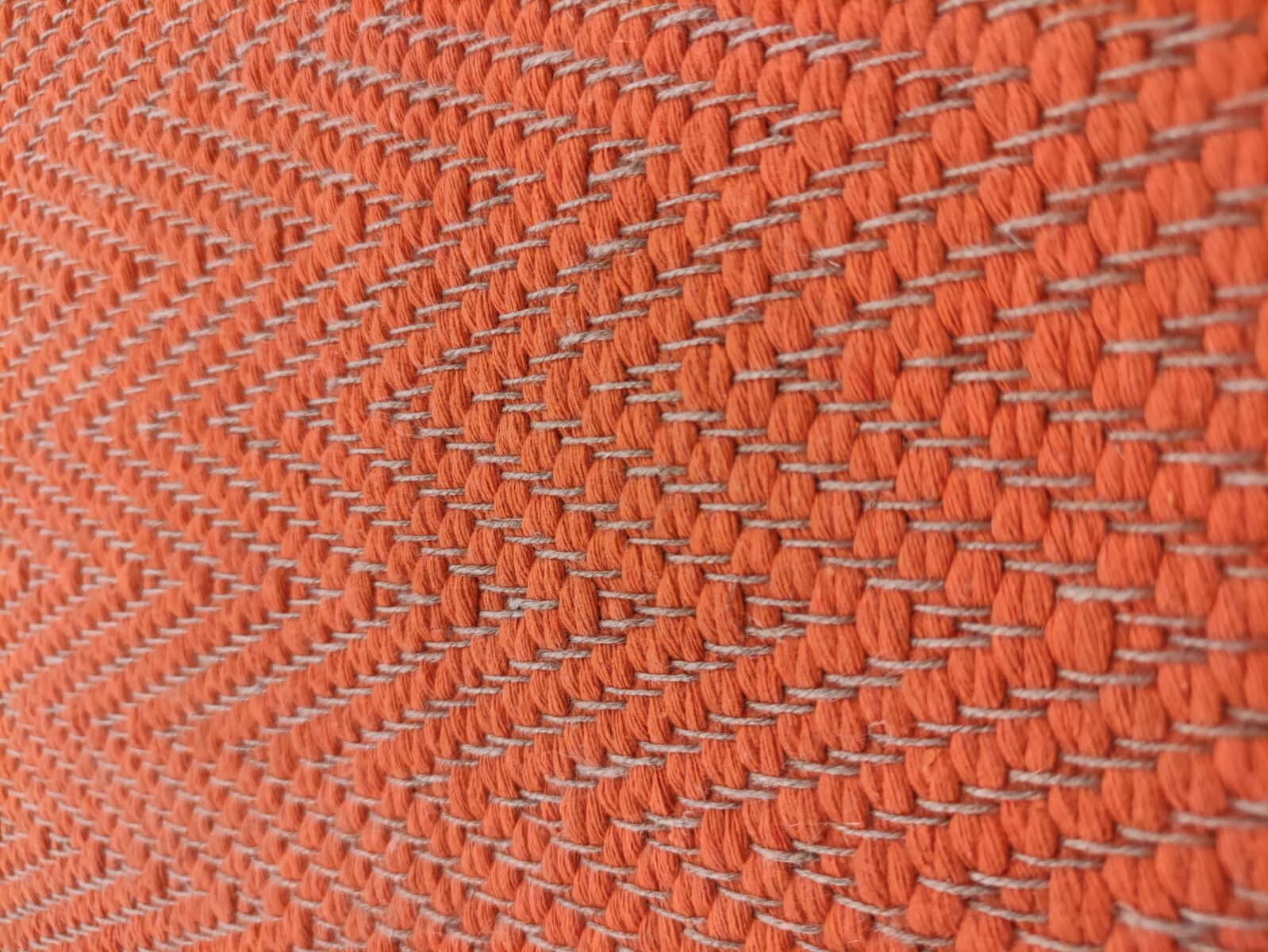 Il Tappeto Spina di Pesce Arancione è un classico senza tempo, reinterpretato attraverso la qualità dell’artigianato italiano. È realizzato interamente a telaio manuale, utilizzando una trama in cotone anallergico e un ordito in lino naturale. La tessitura crea un motivo a spina di pesce fitto e regolare, un disegno che da sempre richiama eleganza, ordine e solidità. La superficie presenta una mano materica ma uniforme, perfetta per chi desidera un tappeto pratico e raffinato allo stesso tempo. A differenza dei modelli double face, questo tappeto è identico su entrambi i lati, una caratteristica che lo rende ancora più resistente e stabile nell’uso quotidiano.