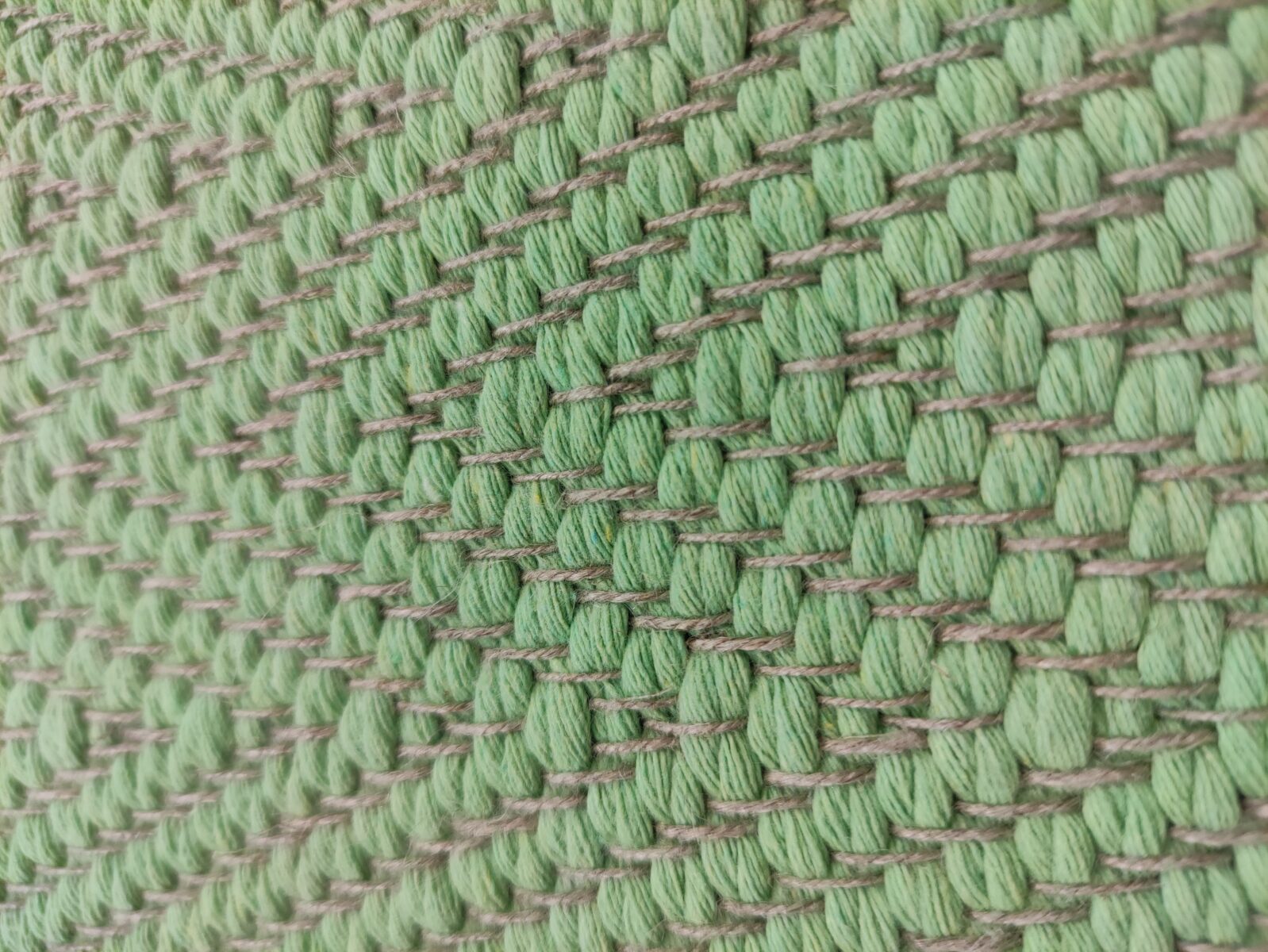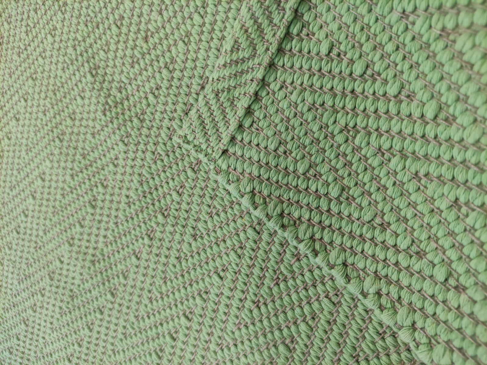 Il Tappeto Spina di Pesce Verde Acido è un classico senza tempo, reinterpretato attraverso la qualità dell’artigianato italiano. È realizzato interamente a telaio manuale, utilizzando una trama in cotone anallergico e un ordito in lino naturale. La tessitura crea un motivo a spina di pesce fitto e regolare, un disegno che da sempre richiama eleganza, ordine e solidità. La superficie presenta una mano materica ma uniforme, perfetta per chi desidera un tappeto pratico e raffinato allo stesso tempo. A differenza dei modelli double face, questo tappeto è identico su entrambi i lati, una caratteristica che lo rende ancora più resistente e stabile nell’uso quotidiano.