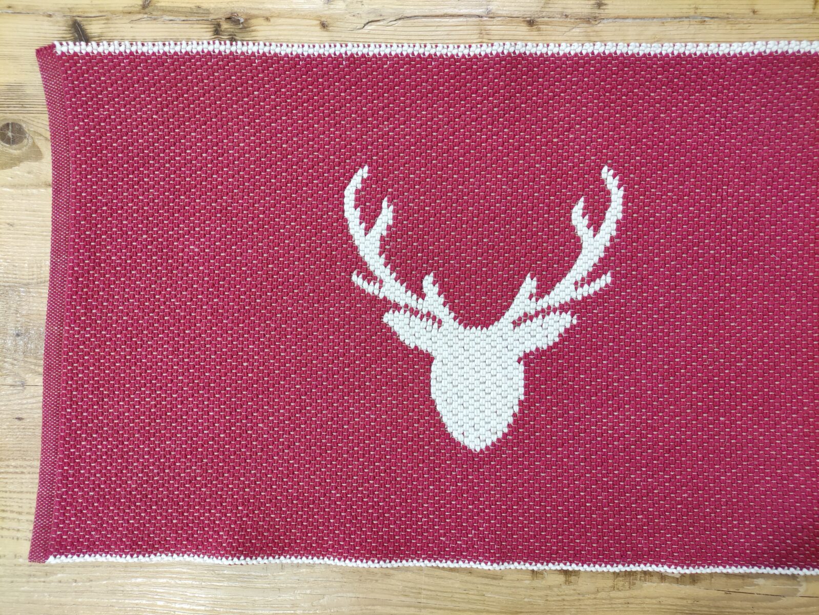Il Tappeto Testa di Cervo Artigianale è un omaggio alla tradizione montana e alla simbologia elegante che questo animale rappresenta. È un tappeto realizzato interamente a telaio manuale, con una lavorazione che esalta la matericità delle fibre naturali. Il disegno, netto e riconoscibile, occupa la superficie con un equilibrio visivo che cattura subito lo sguardo. La testa di cervo emerge come una silhouette chiara su un fondo colorato, mentre dall’altro lato si presenta in negativo. Questo effetto positivo/negativo permette di scegliere ogni giorno quale atmosfera creare nella stanza.