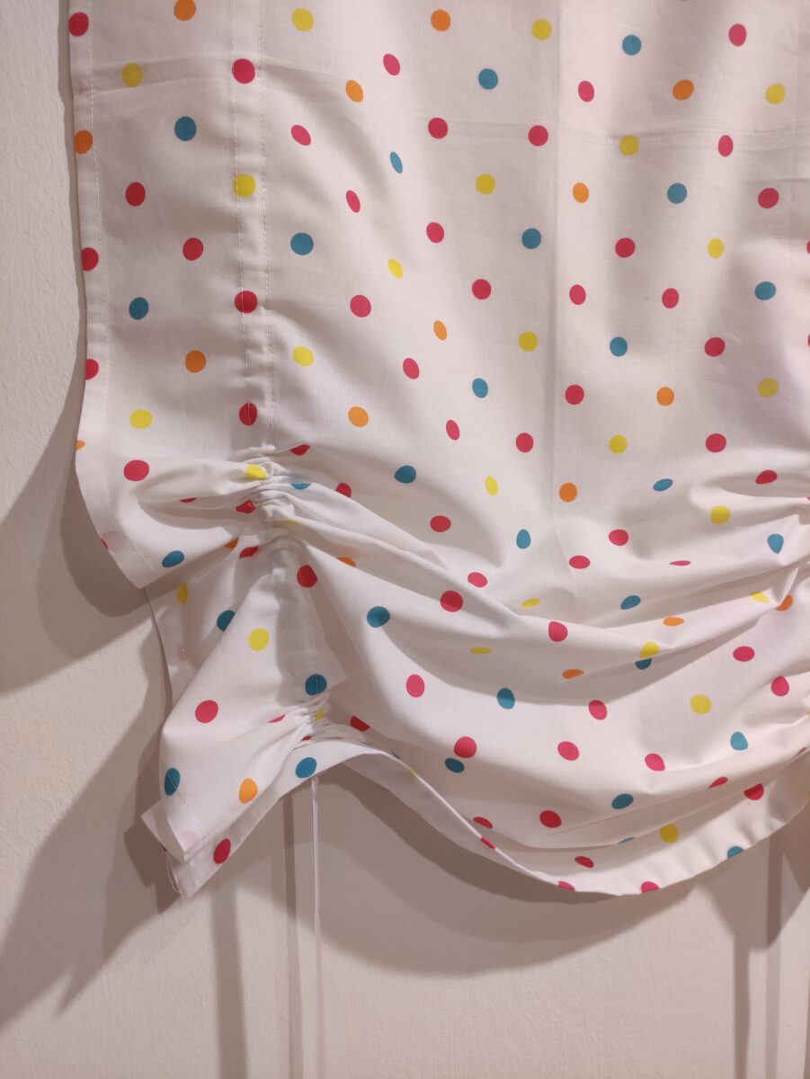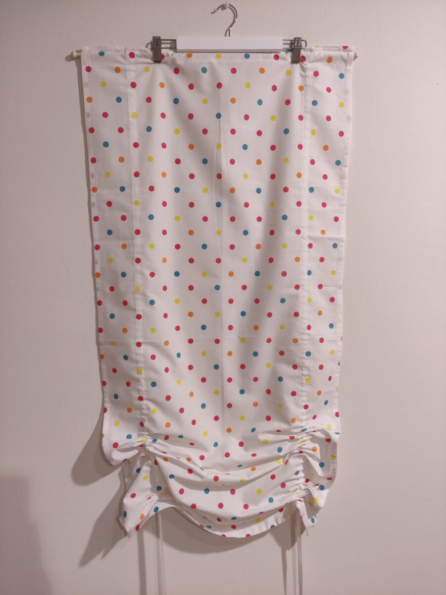 Splendida tendina a pacchetto in puro cotone con vivaci pois stampati, come una cascata di deliziose caramelle! Regola l’altezza con eleganti nastrini in raso e lasciati incantare dalla sartoria artigianale dietro ogni accurato particolare. Un tocco divertente e funzionale per la tua casa! L’etichetta con il nostro logo garantisce l’autenticità del prodotto. Una proposta unica da prendere al volo! Questo è l’angolo outlet delle nostre tende confezionate. Controlla le misure: se pensi che possano andare bene, non lasciarti scappare questa splendida tenda super scontata.