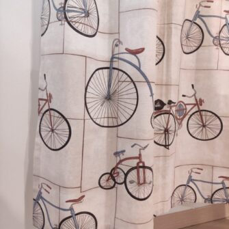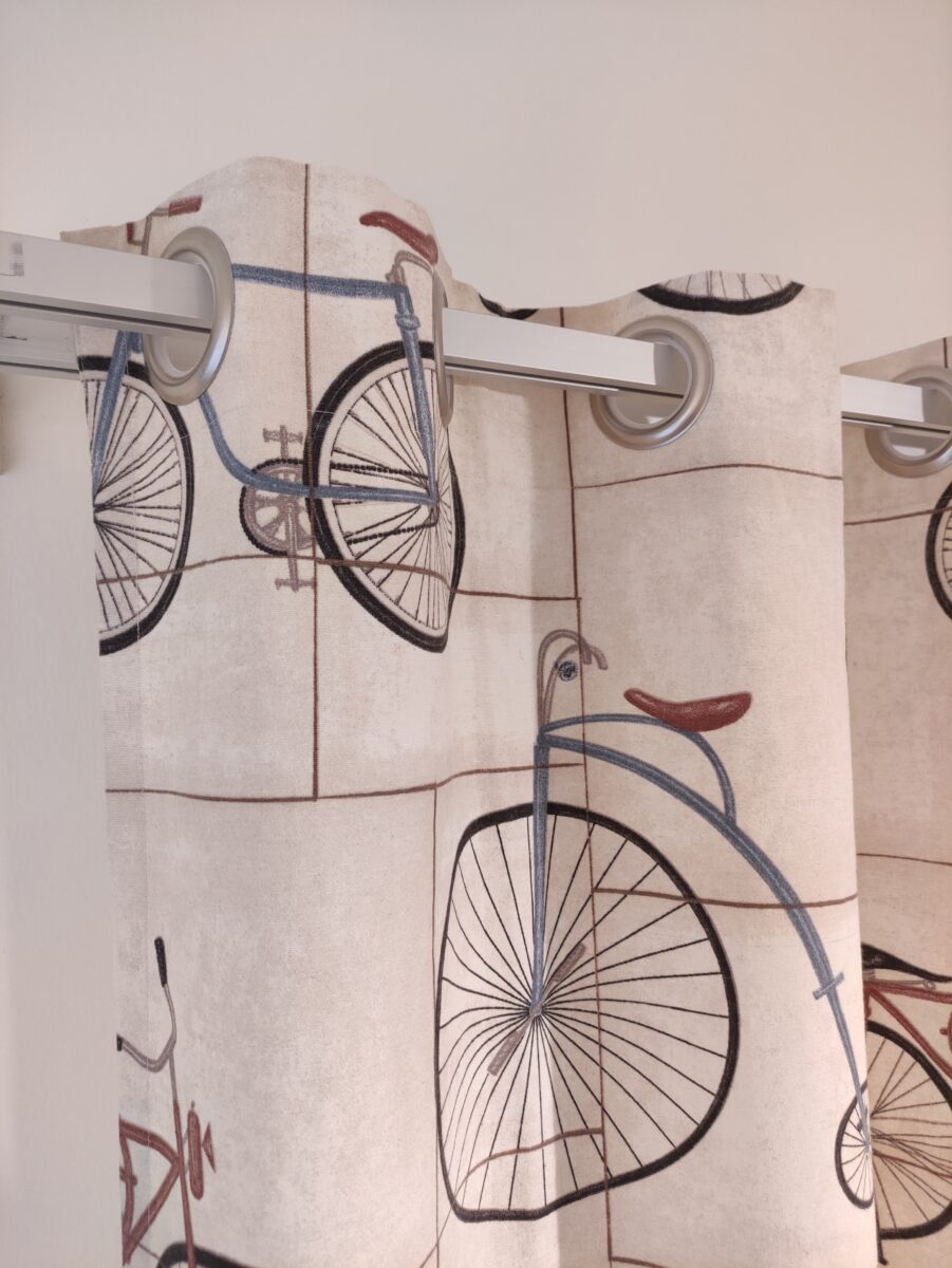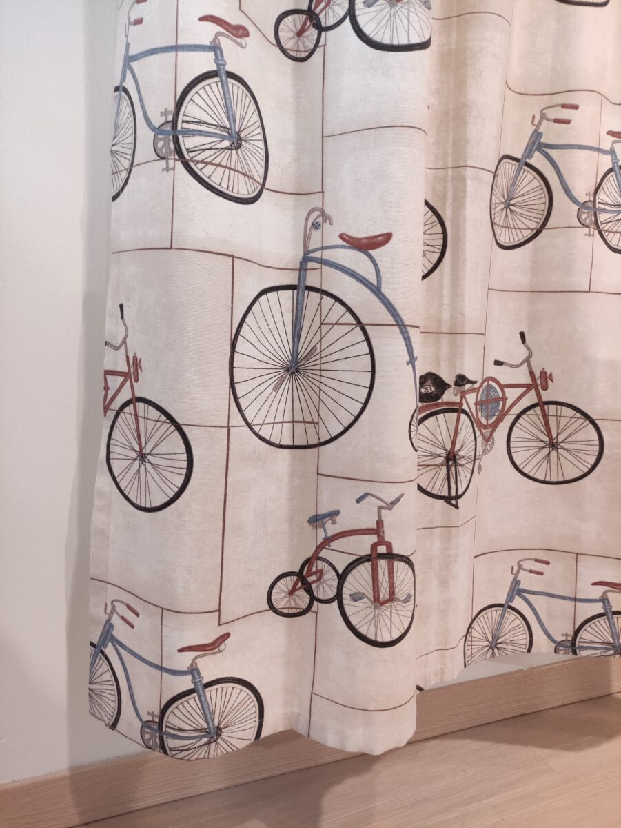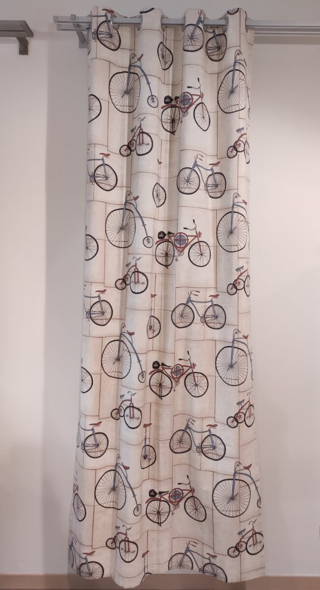 👉 Questa tenda con oblò e stampa biciclette è un pezzo unico, disponibile fino ad esaurimento.