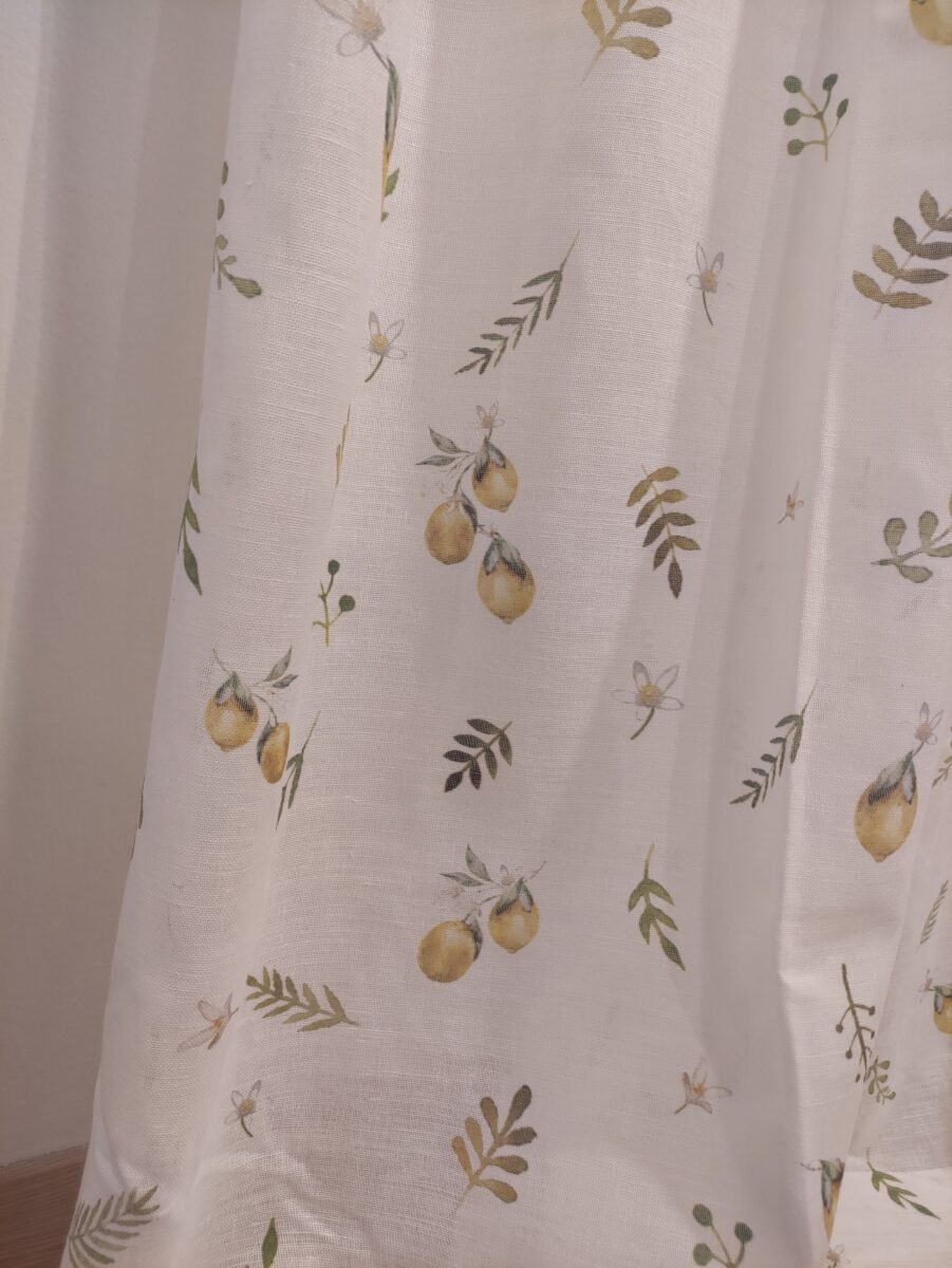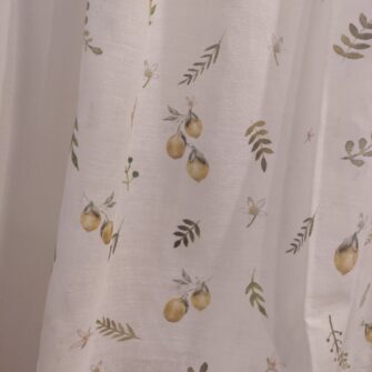 Questa tenda in voile di lino con stampa limoni evoca immediatamente atmosfere mediterranee, portando luce e freschezza all’interno della casa.