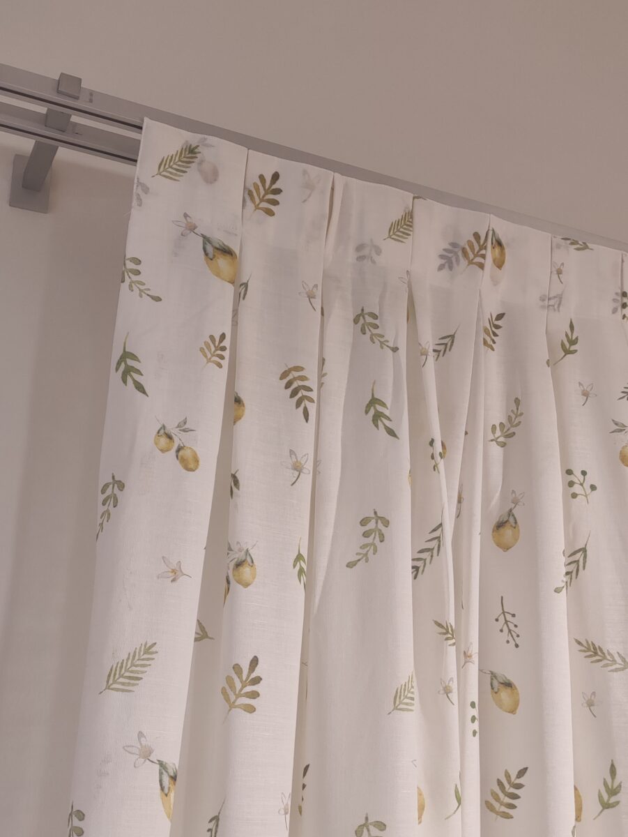 La tenda in voile di lino con stampa limoni si presta inoltre ad essere abbinata a tendaggi più strutturati, permettendo di creare composizioni a più livelli che uniscono funzionalità ed estetica.