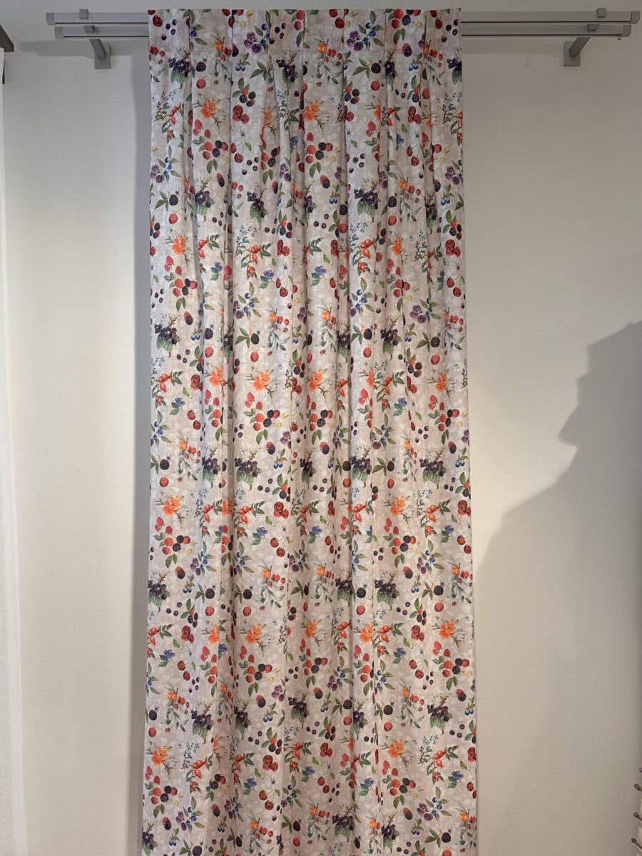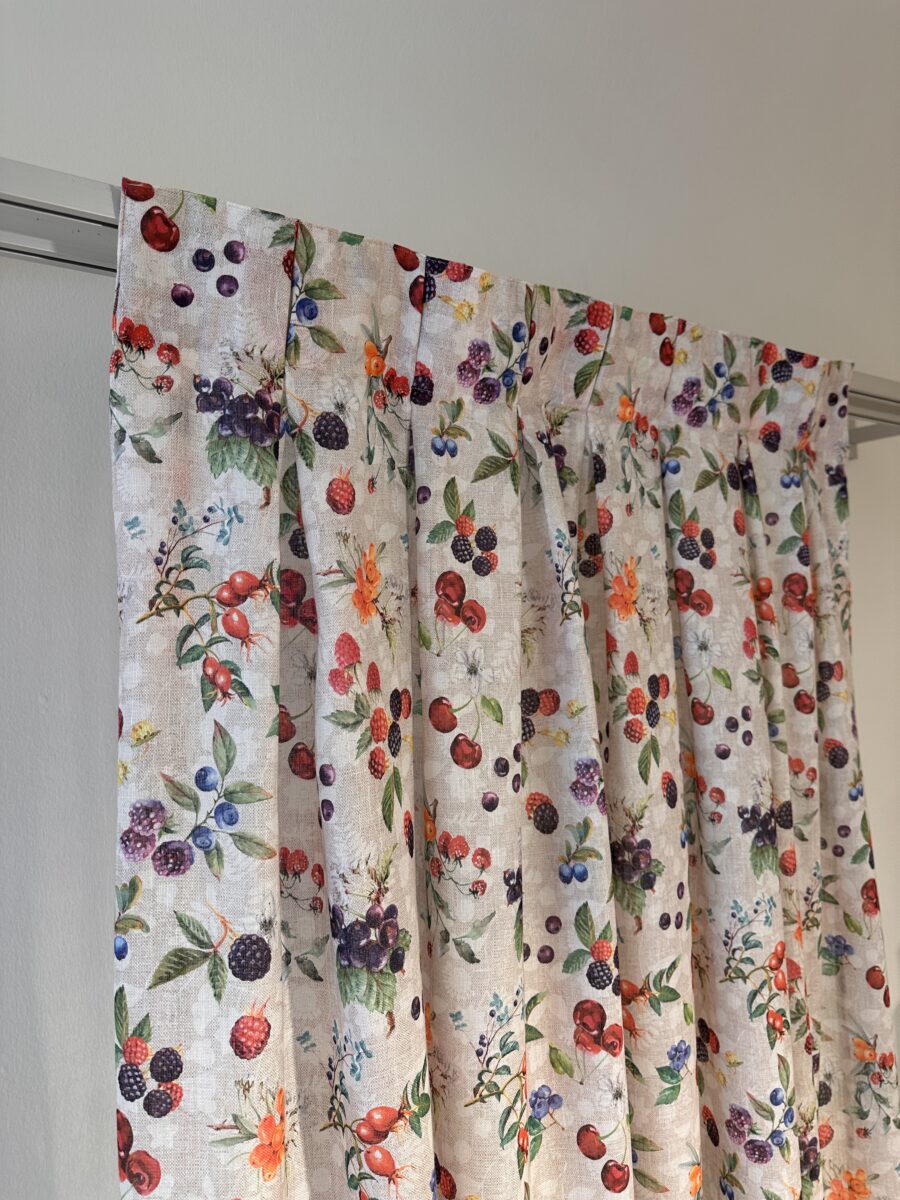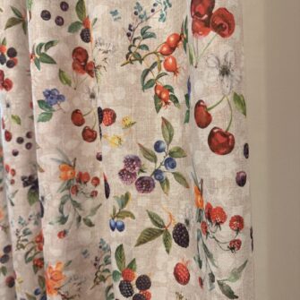 Questa tenda in voile di lino con stampa frutta è pensata per portare colore e vitalità negli spazi. Senza rinunciare alla leggerezza tipica dei tessuti filtranti.