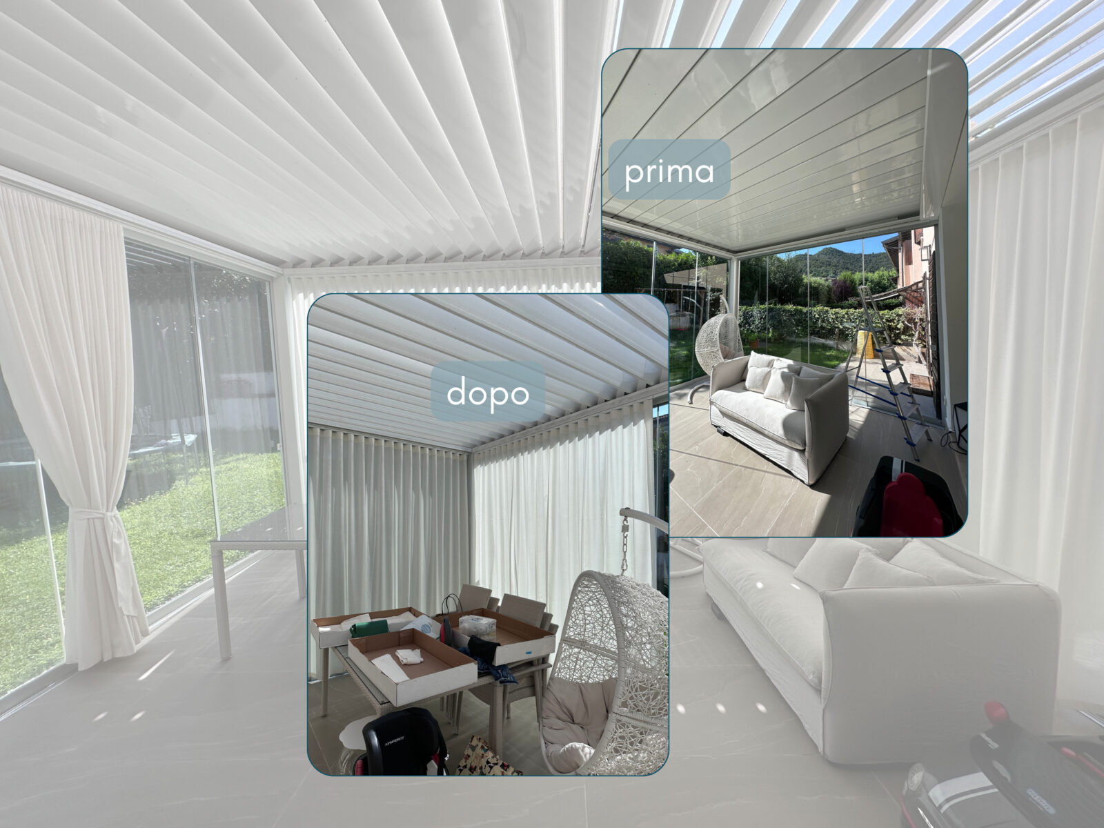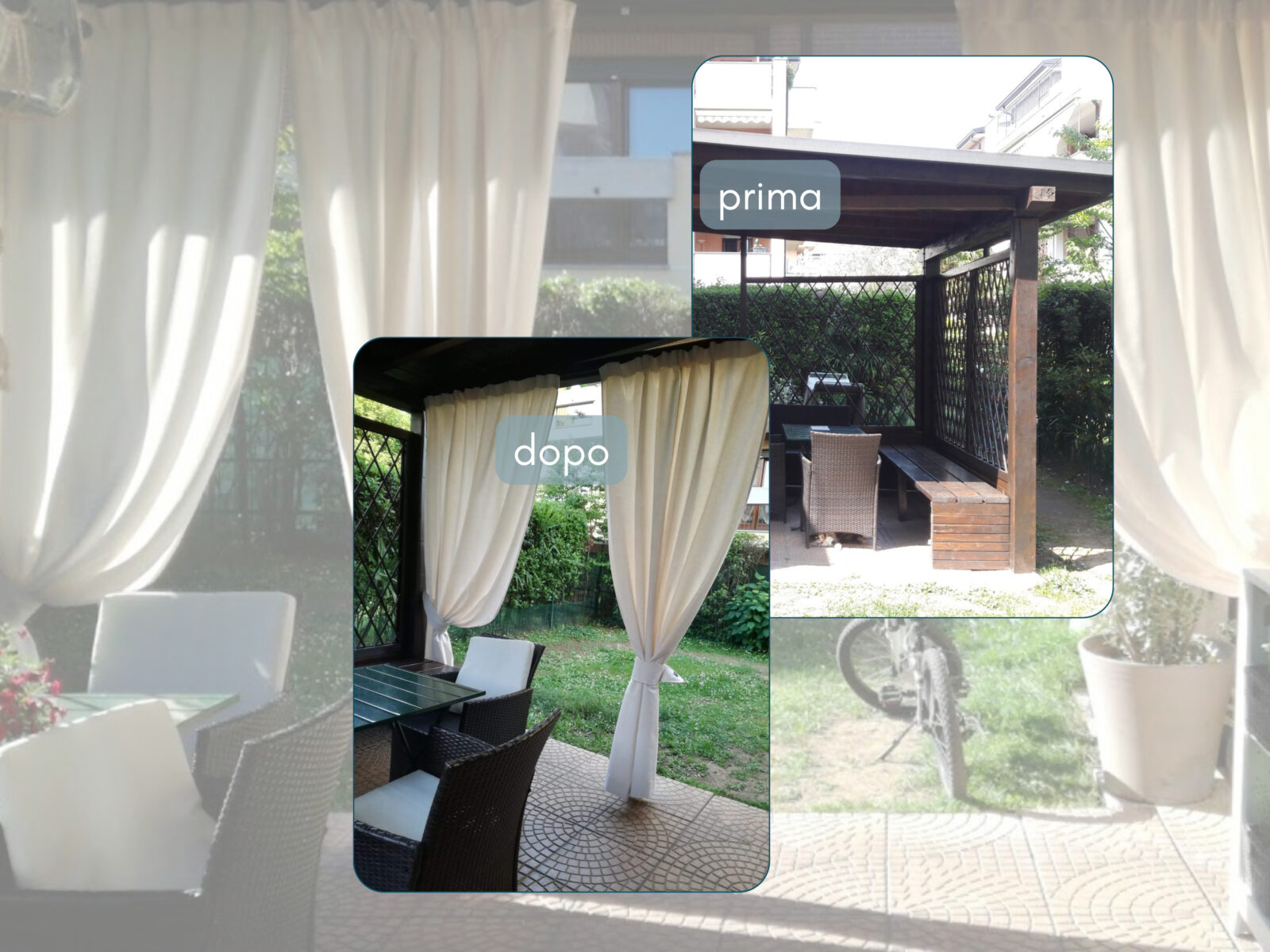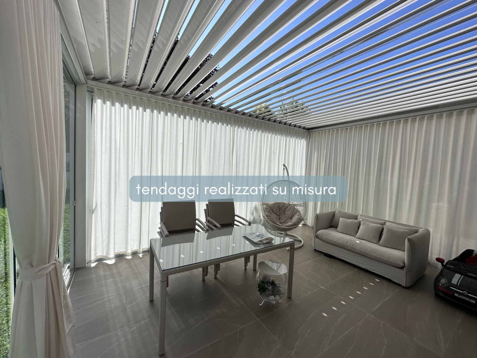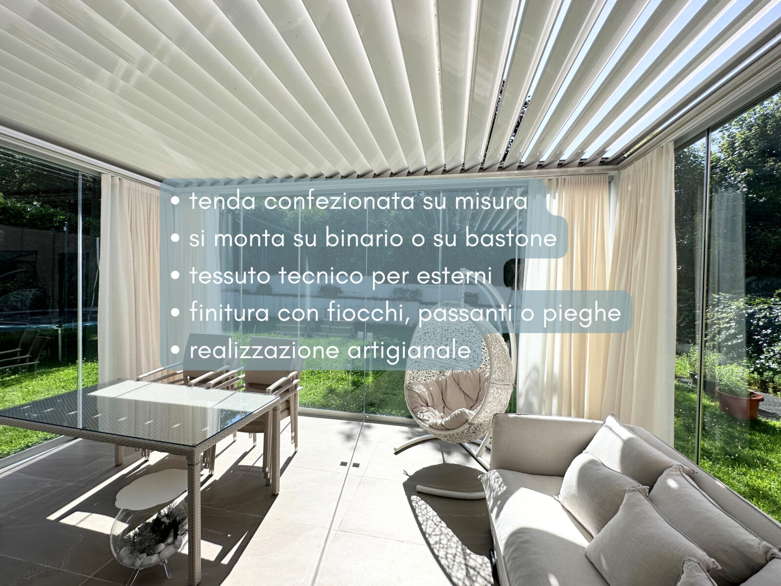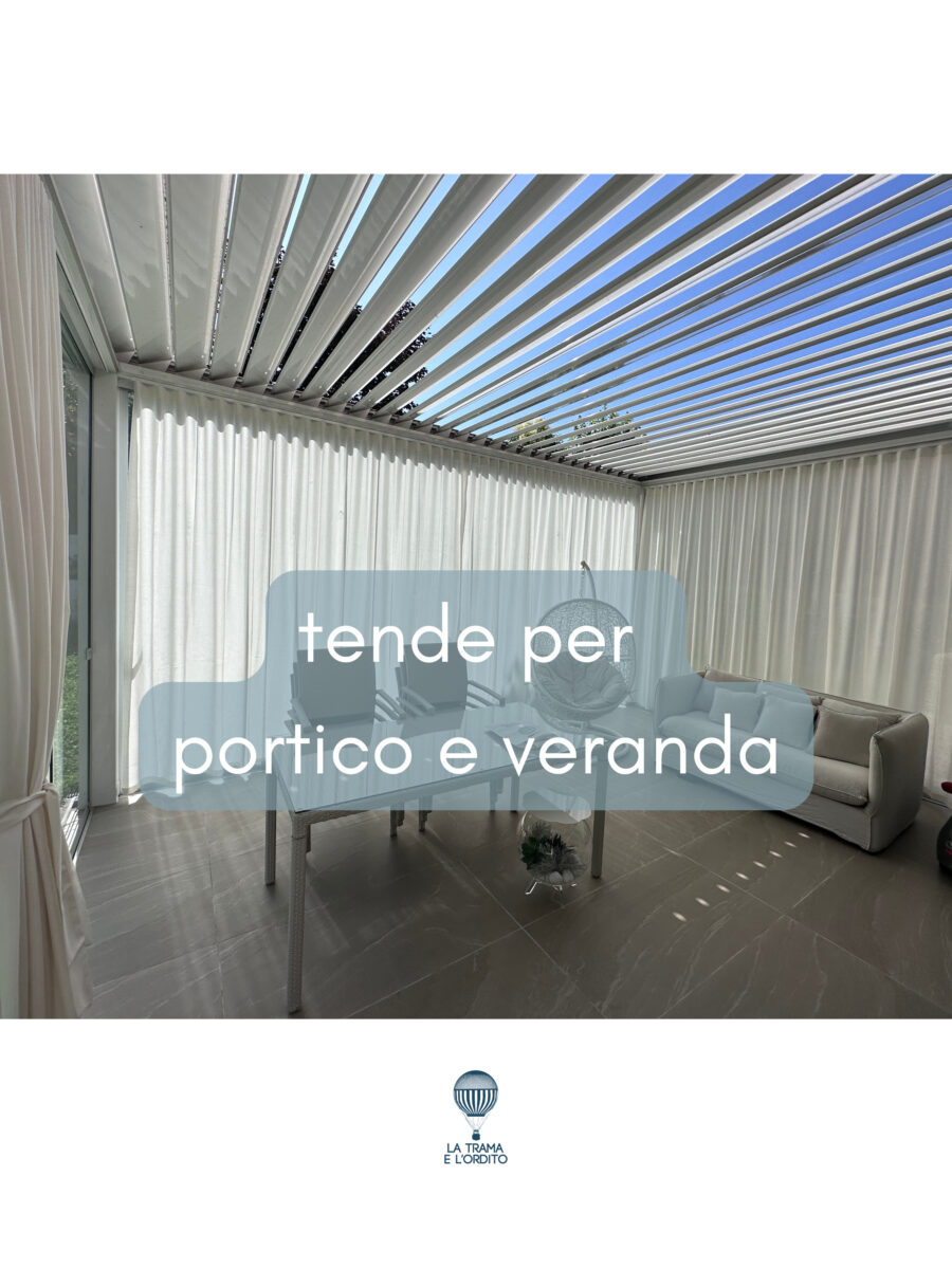 Le tende per portico e veranda su misura permettono di trasformare uno spazio esterno coperto in un ambiente più intimo e confortevole.