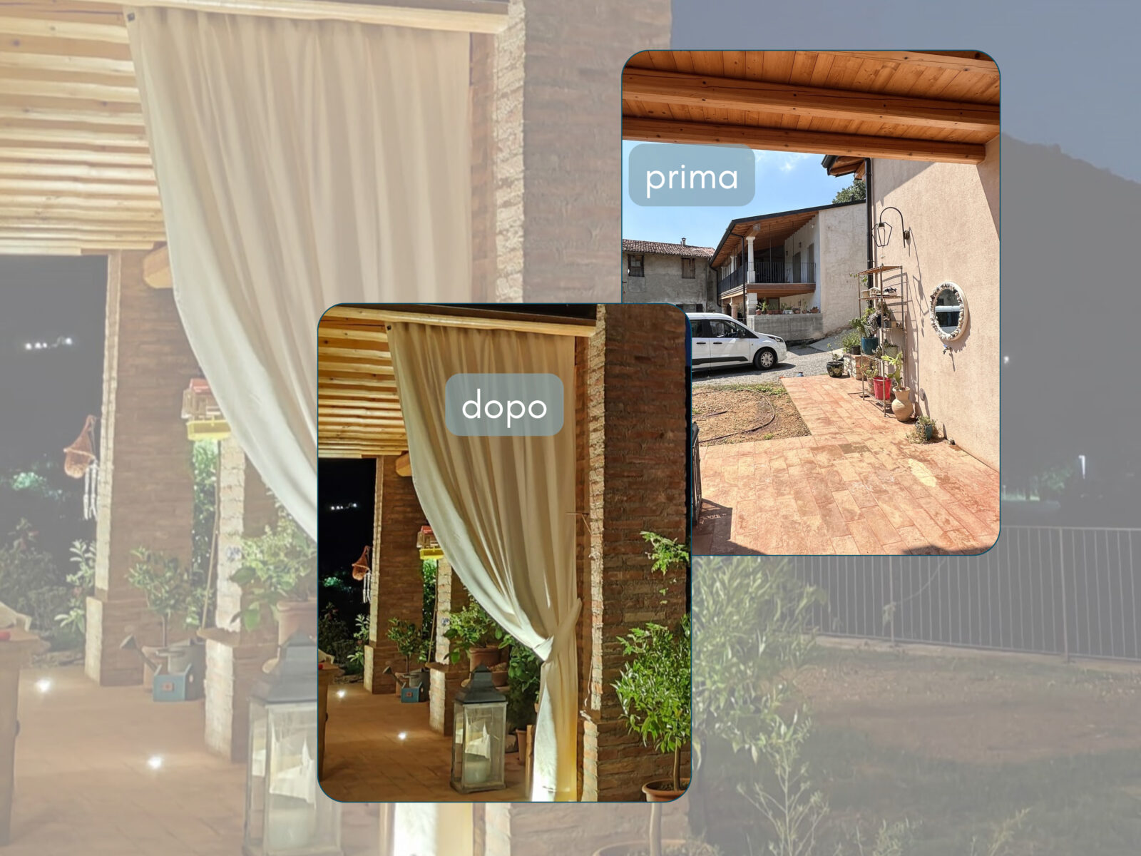 Grazie alla confezione sartoriale e alla scelta dei tessuti, le tende per portico diventano un elemento importante dell’arredo esterno, capace di valorizzare sia ambienti rustici sia contesti più contemporanei.