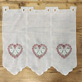 Tag: cuori tirolesi, mantovana, mantovana cuori, mantovana fiorellini ricamati, mantovana tirolese, montagna, ricami, tessuti pretagliati, tirolo