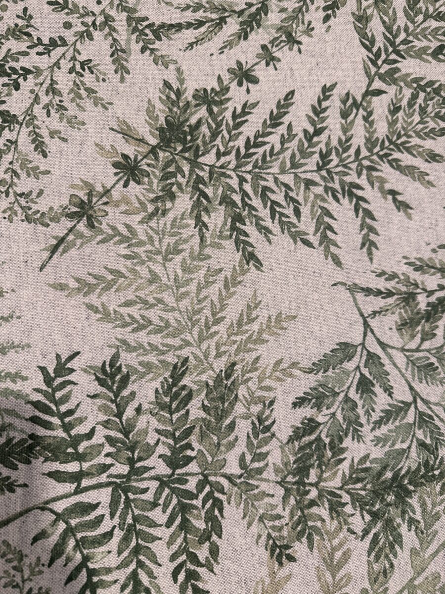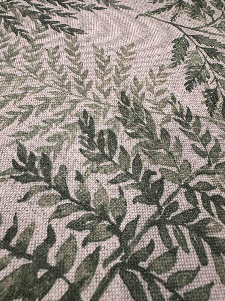 Il Tessuto Felci Antimacchia Resinato richiama la natura in modo elegante e rilassante. Le felci si intrecciano leggere sul fondo effetto lino, creando un disegno armonioso e senza tempo. Le tonalità verdi, sovrapposte e sfumate, donano profondità e movimento, mantenendo però un equilibrio visivo delicato.