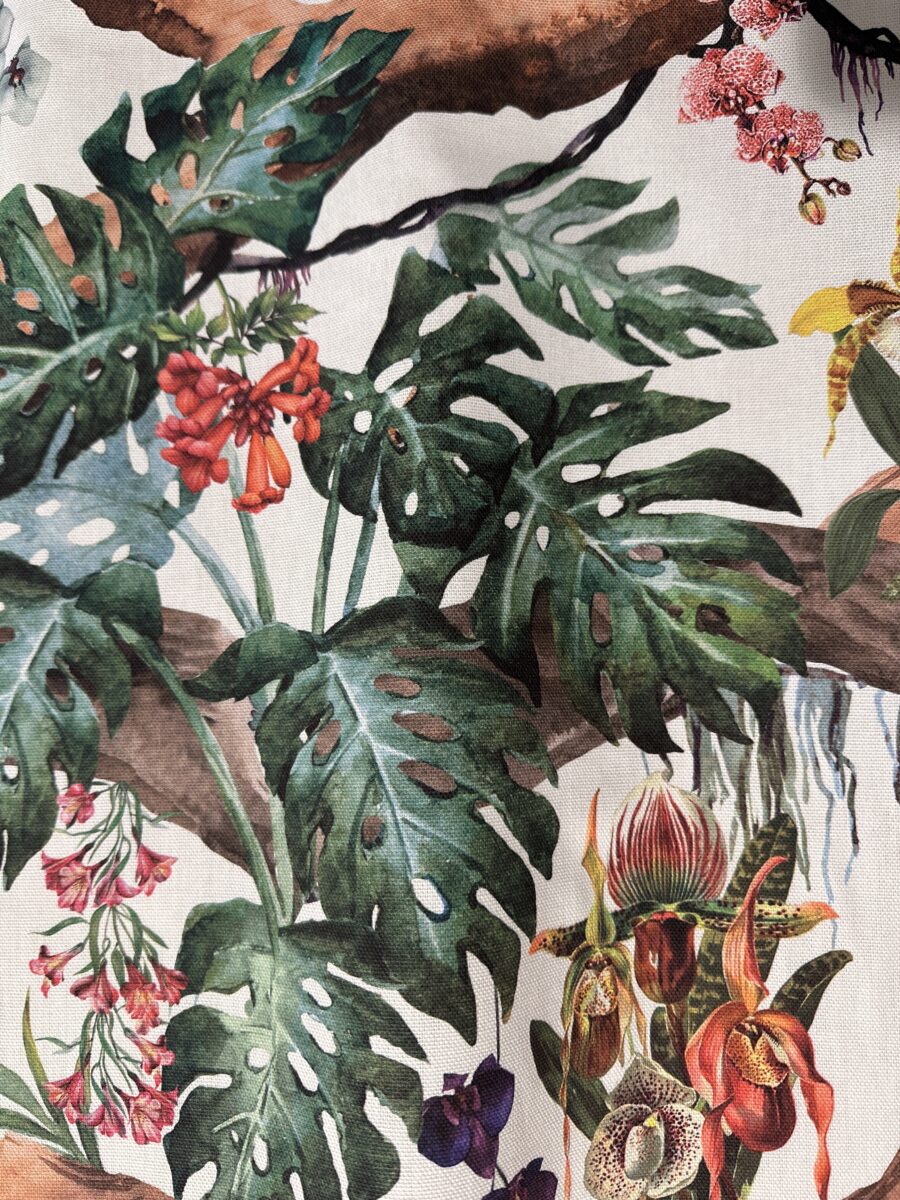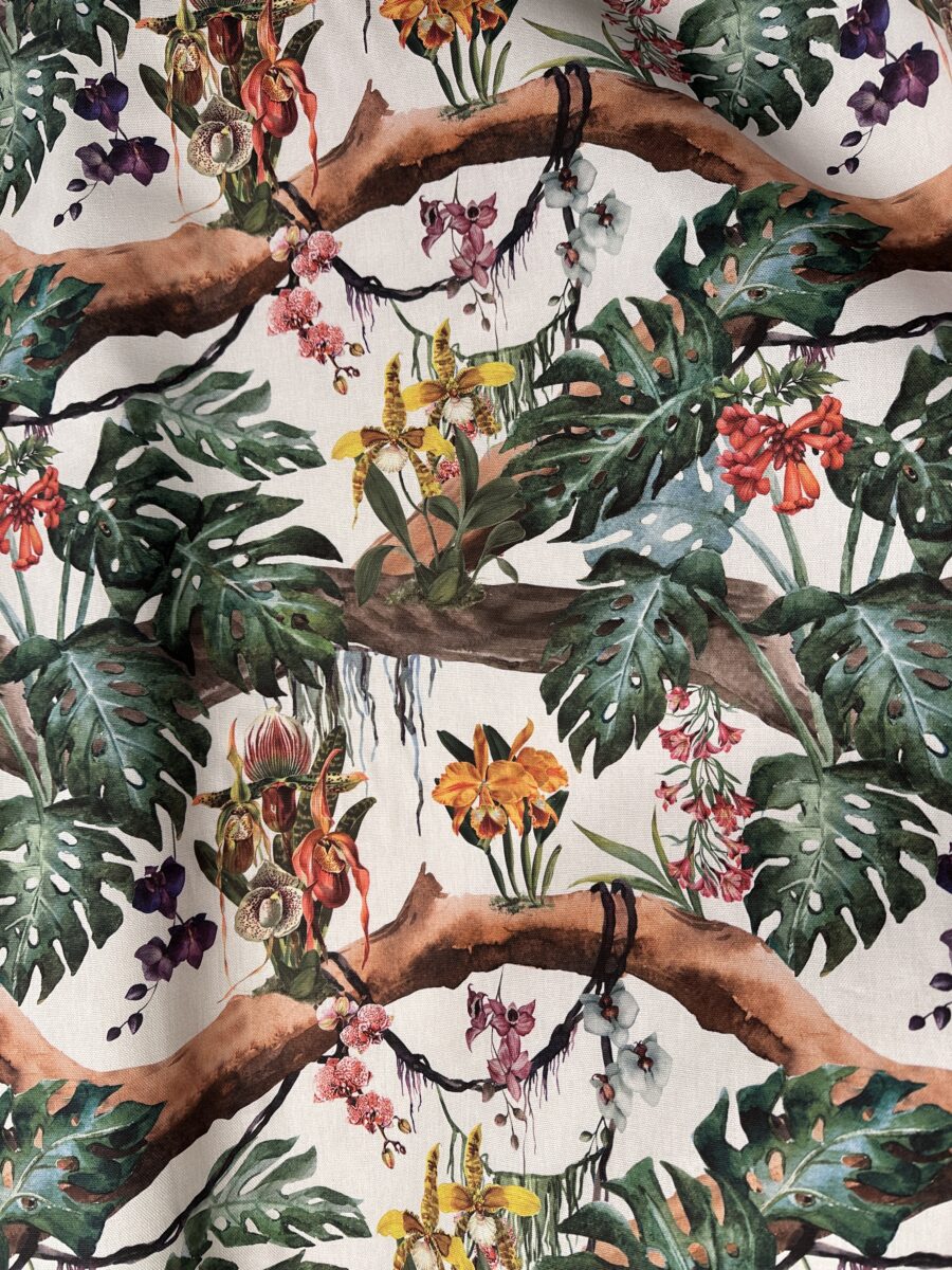 Il Tessuto Foglie Monstera è un elegante cotone stampato che porta un tocco di raffinatezza e serenità in ogni ambiente. Con un’altezza di 280 cm, è perfetto per la realizzazione di copriletto, copridivani, tovaglie e altri progetti di arredamento che richiedono tessuti di grandi dimensioni senza la necessità di giunte. Grazie alla sua ampiezza, il “Ramo Orchidee” offre una continuità visiva che arricchisce ogni spazio con eleganza e stile.