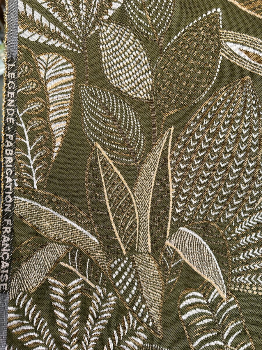 La combinazione cromatica tra il kaki, caldo e contemporaneo, e l’oro, luminoso e prezioso, dona profondità e movimento al disegno. Il risultato è un tessuto decorativo ma versatile, capace di adattarsi sia ad ambienti moderni che a contesti più classici.