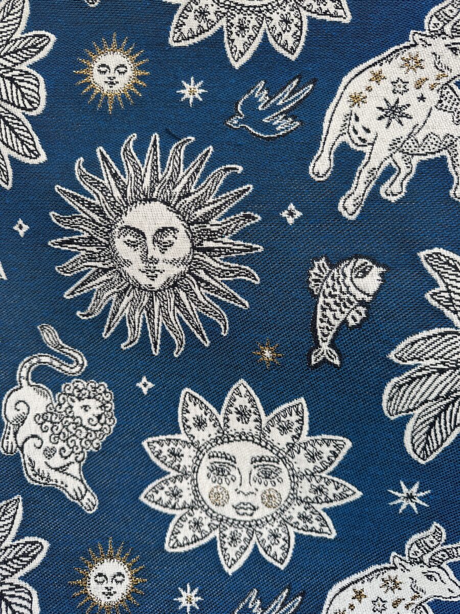 Il Jacquard Zodiaco è un tessuto scenografico e ricco di personalità. Perfetto per chi desidera portare negli ambienti un tocco originale, elegante e leggermente magico.