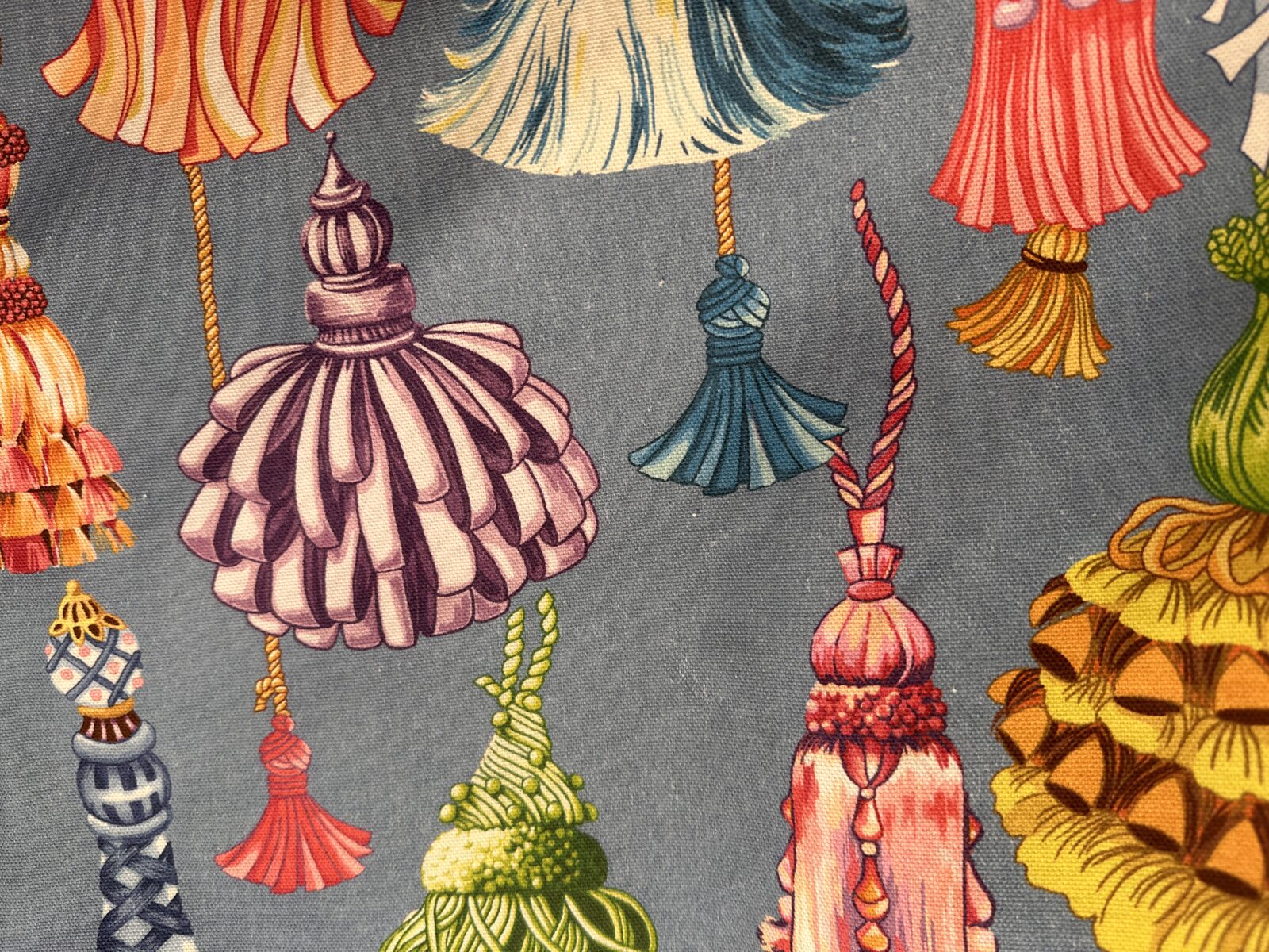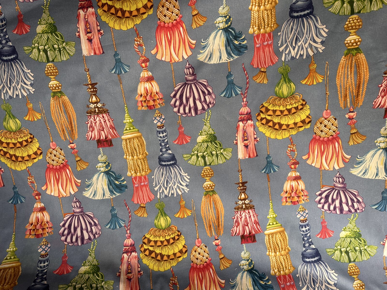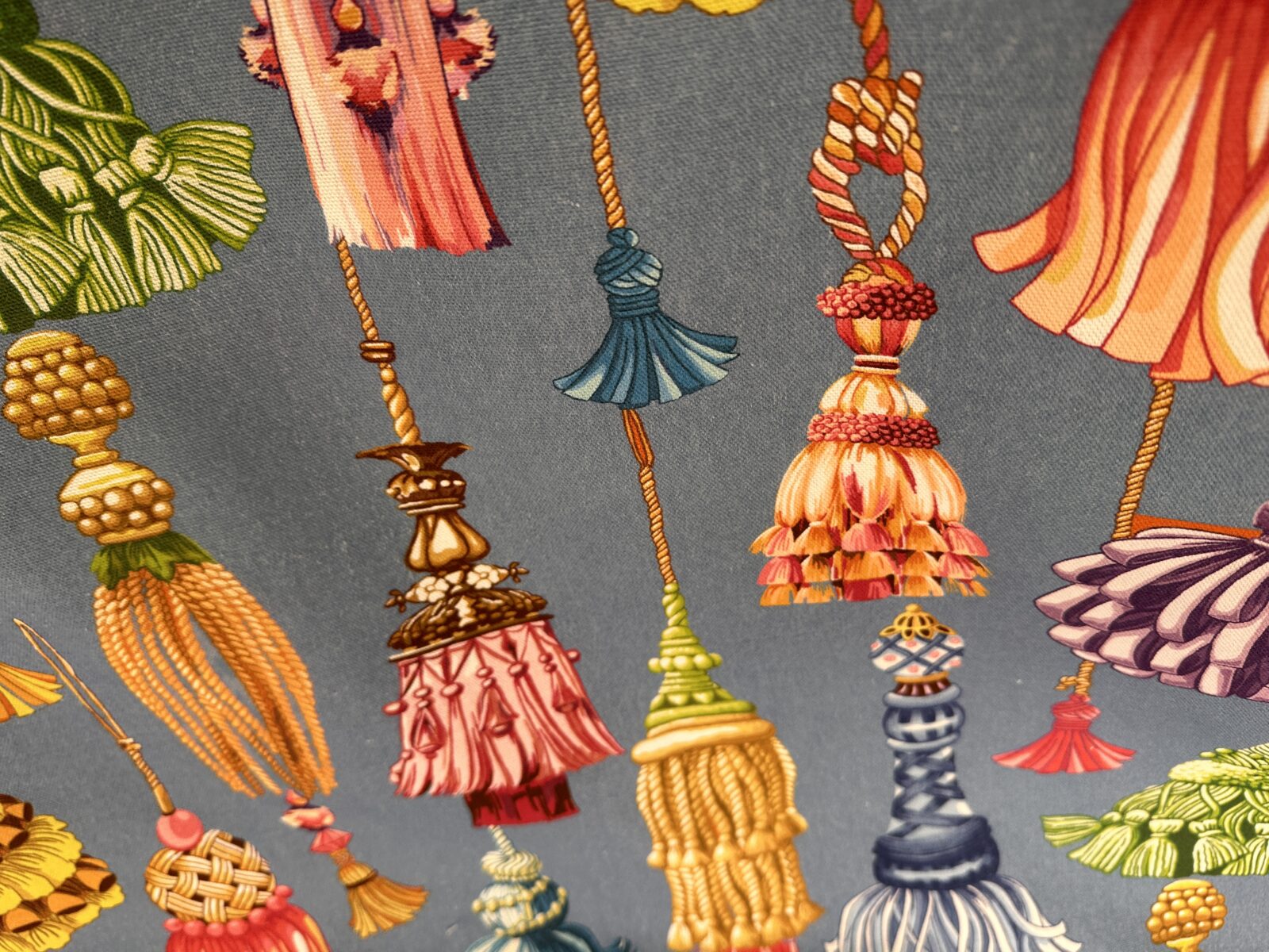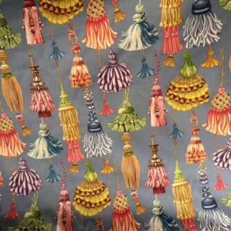 Il Tessuto Nappe Versailles è un cotone stampato decorativo, pensato per chi ama i pattern scenografici e raffinati. Il disegno riproduce una sequenza di nappe ornamentali, reinterpretate in chiave illustrativa e contemporanea. Le forme sono ricche ma ben equilibrate, mentre il ritmo del motivo crea un effetto dinamico e continuo. Di conseguenza il tessuto risulta decorativo senza essere eccessivo.