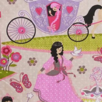 Il Tessuto Principesse è un cotone stampato che trasforma la cameretta dei bambini in un vero e proprio regno delle fiabe. Con un’altezza di 160 cm, questo tessuto è perfetto per realizzare tende, copriletto, cuscini e altri complementi d’arredo per una stanza da principessa. Il design presenta scene incantevoli con castelli, principesse in abiti eleganti e carrozze, tutto in un’atmosfera da fiaba. I colori delicati del rosa, verde e giallo, uniti ai dettagli ricchi e vivaci, creano un ambiente da sogno che stimola la fantasia dei bambini.