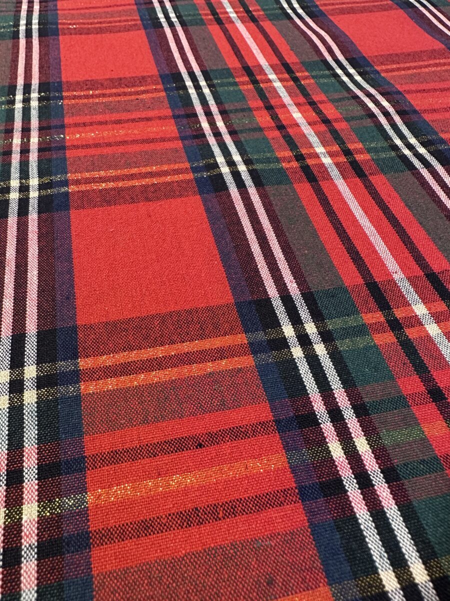 Il Tessuto Tartan Rosso Lurex si presta sia ad ambienti classici, dove richiama la tradizione dei tessuti scozzesi rivisitati in chiave decorativa, sia a contesti più contemporanei, in cui il contrasto tra geometria e filo metallico crea un interessante gioco visivo. Per questo motivo è ideale anche per cuscini, rivestimenti tessili e complementi d’arredo coordinati.
