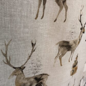 La stampa cervi, declinata in una palette di eleganti toni tortora, rende questo tessuto estremamente versatile. È una scelta ideale per chi desidera un tendaggio decorativo ma sobrio, capace di inserirsi con naturalezza in ambienti moderni, minimal o nordici. Il disegno rimane presente ma discreto, accompagnando l’arredo senza sovrastarlo.