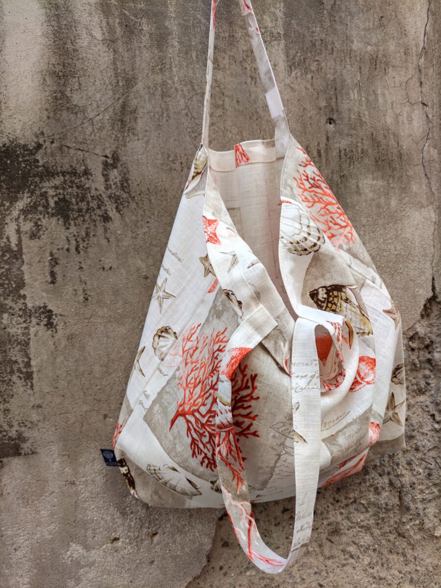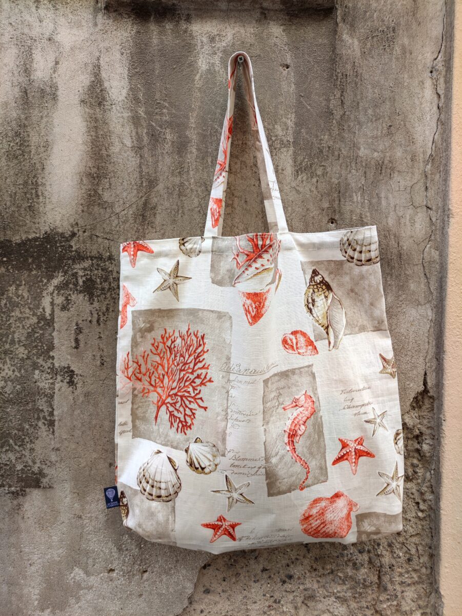 L’etichetta con il logo Trama e Ordito Tessuti garantisce autenticità e produzione 100% italiana. La disposizione dei soggetti sul tessuto può variare leggermente, rendendo ogni borsa un pezzo unico e irripetibile.🐚