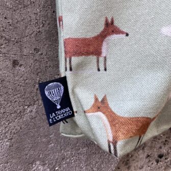 La tote bag in tessuto Volpi è un accessorio originale e divertente, pensato per chi ama portare sempre con sé un dettaglio unico e fantasioso. Non è soltanto una borsa pratica e capiente, ma anche un modo per aggiungere carattere e allegria al proprio look, grazie alla vivace fantasia con le volpi.